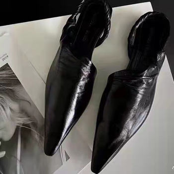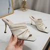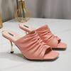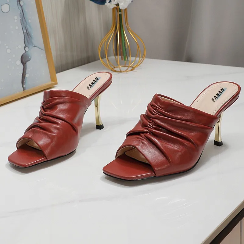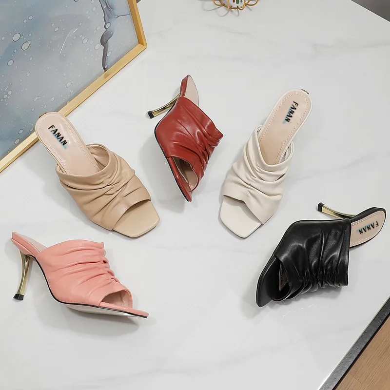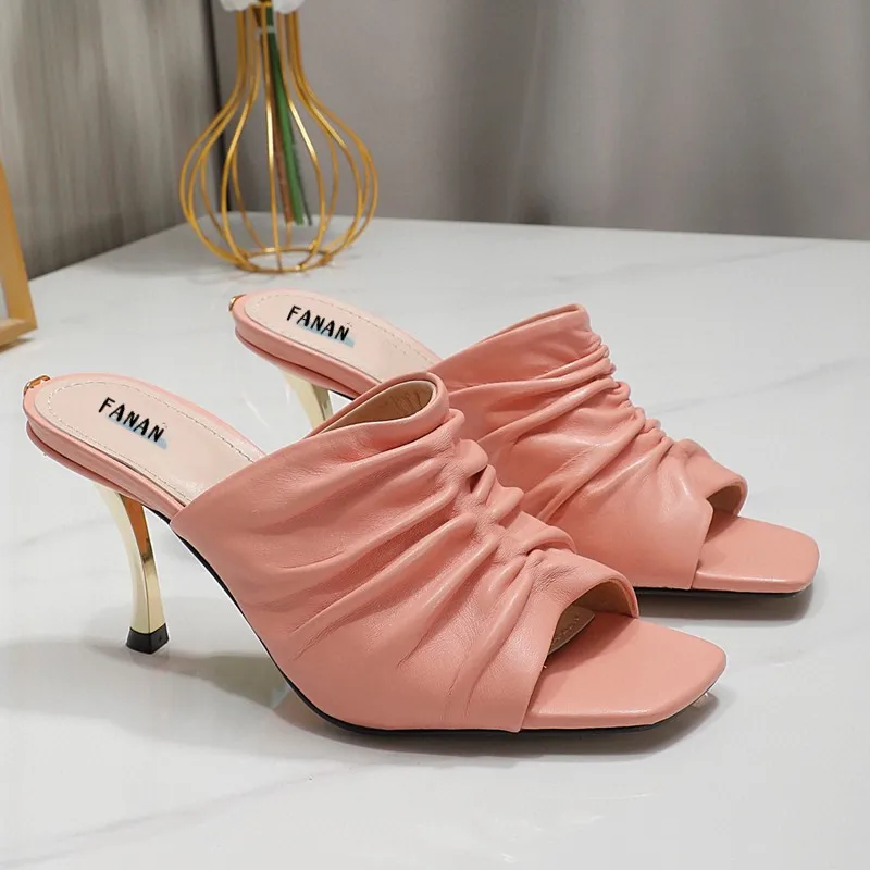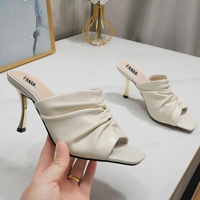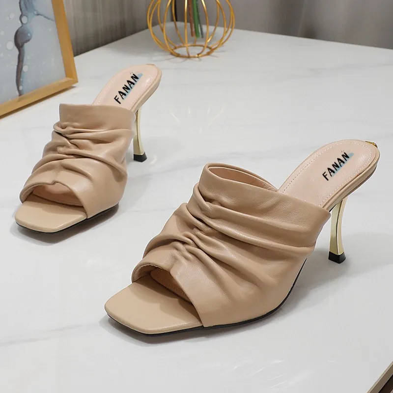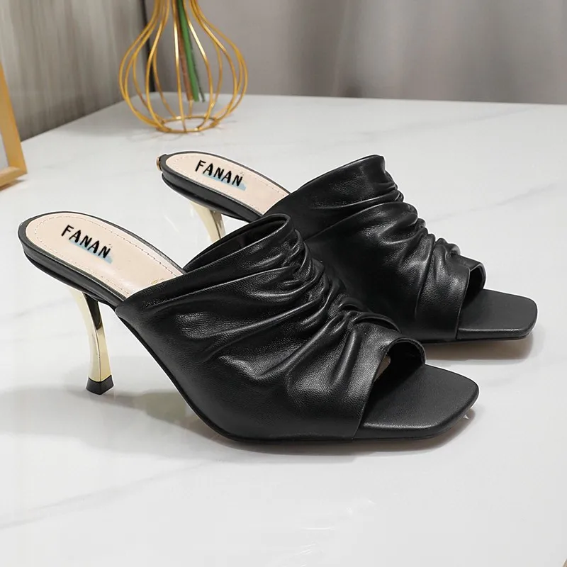 Womens Summer Luxury Mule Sandal Slide Slipper 2023 Fashion Shoes Elegant High Stiletto Heel Open Toe Genuine Leather Slip On
