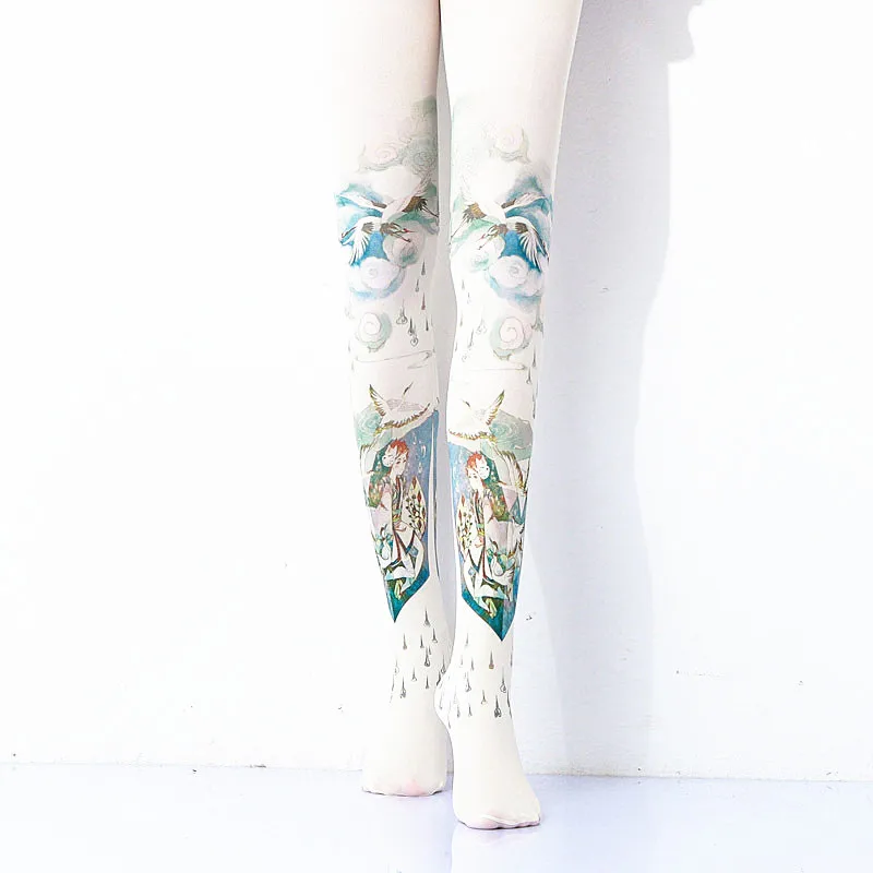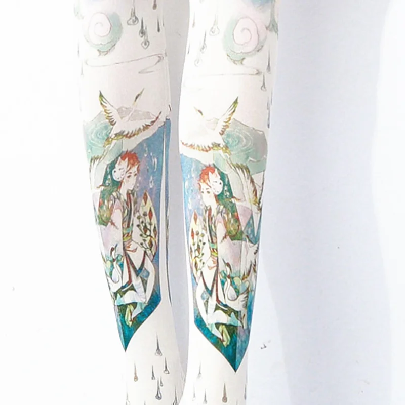 Women’s Tights Chinese Style Mythological Pattern Printed Harajuku Lolita Smooth and Heat Tech Super Stretch Pantyhose Leggings