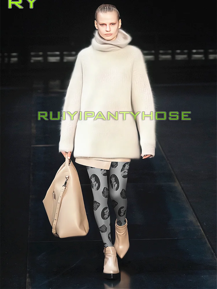 Women’s Tights For Girls Classic Hepburn Head Printed Lolita Pantyhose Leggings Female Lingerie Sexy Stockings Foundation Tight