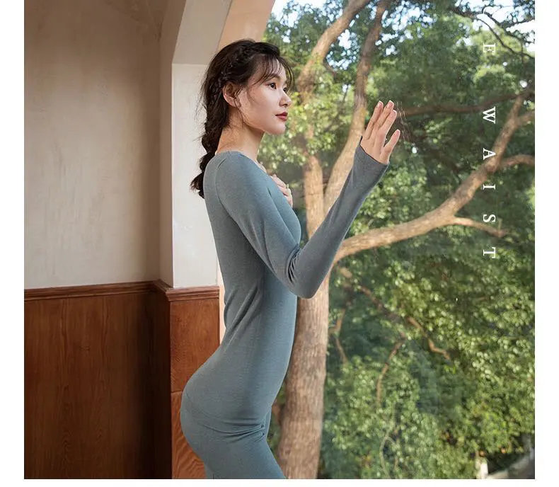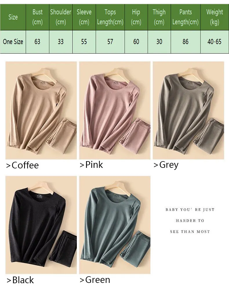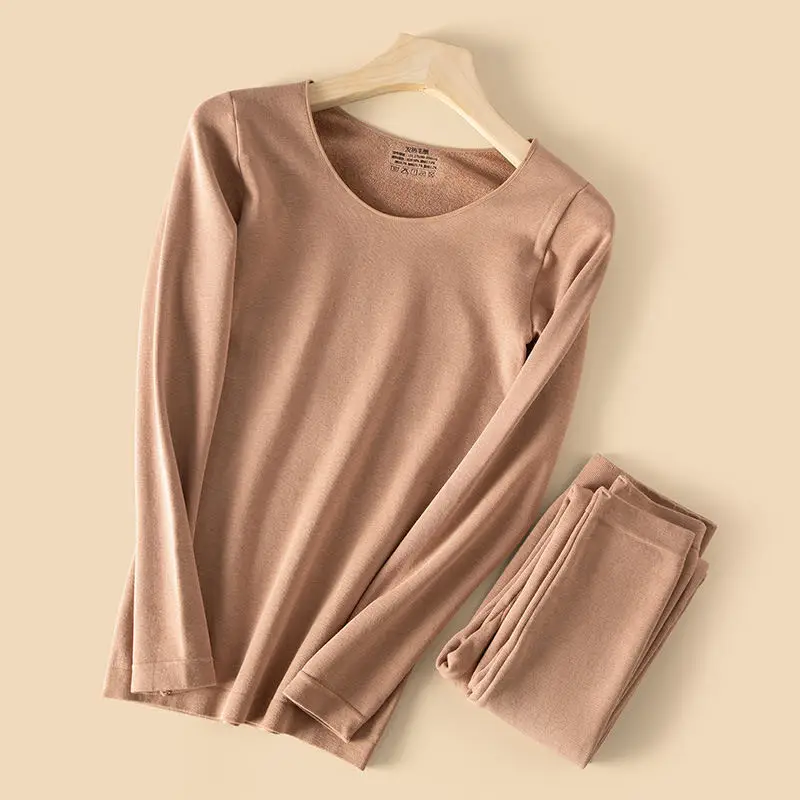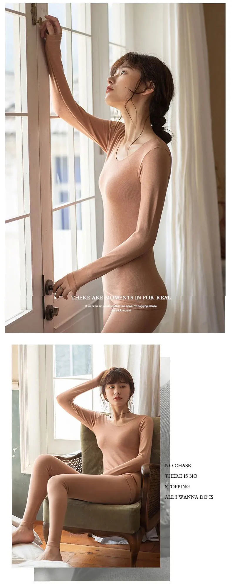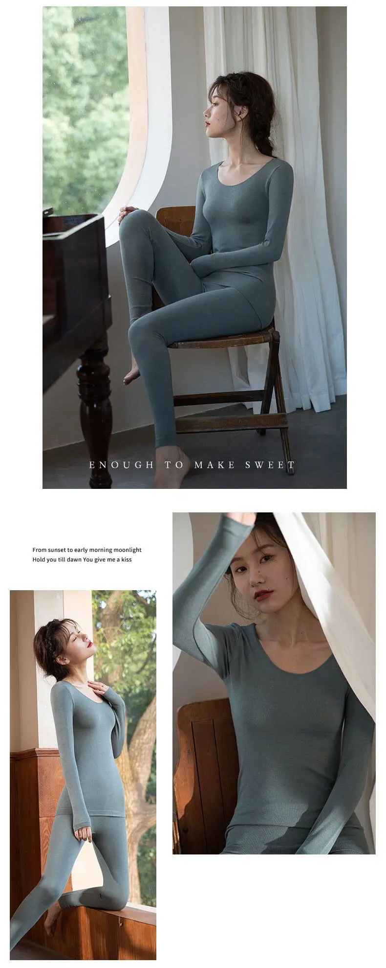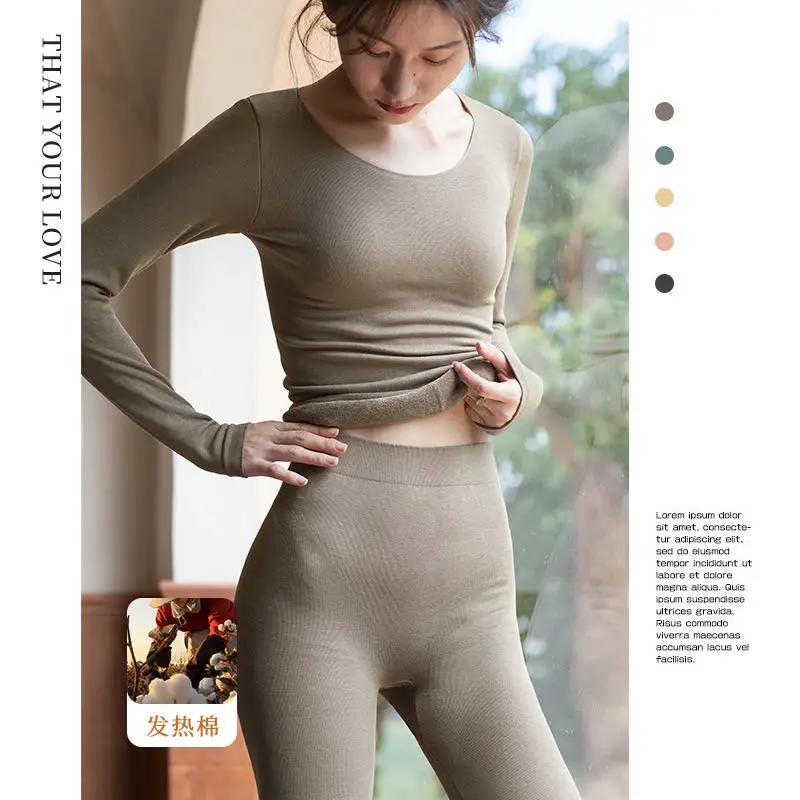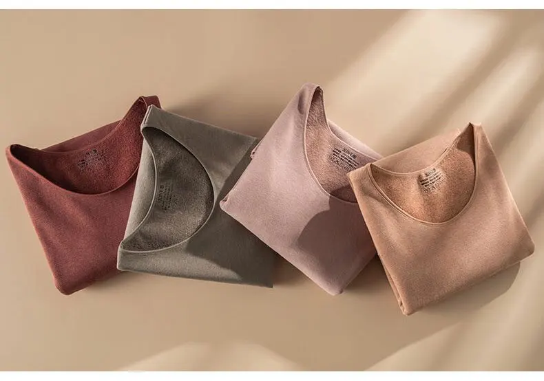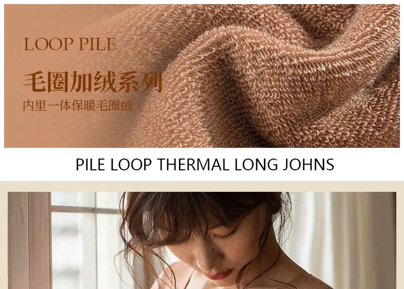 Women’s Winter Heat Thermal Underwear Sets Pile Loop Fleece Keep Warm Long Johns Female Tshirts+pants 2 Pieces O-Neck Body Suits