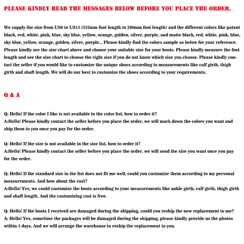 Please kindly contact us for customizing the shoes you prefer if you don’t like the style,the color and the size available in our store. We will deliver your customized