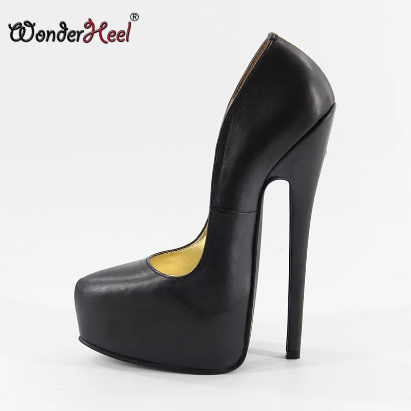 Wonderheel genuine leather pump EXTREME high Heel 20cm thin heel black matte platform women shoes Sexy fetish high Heels pumps