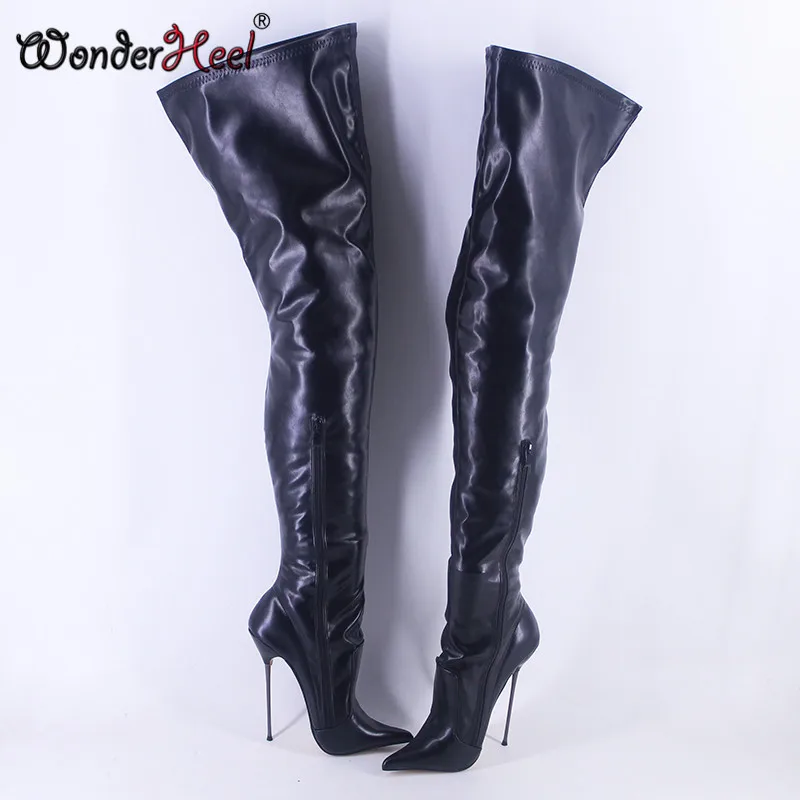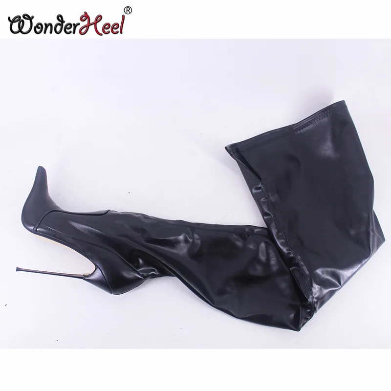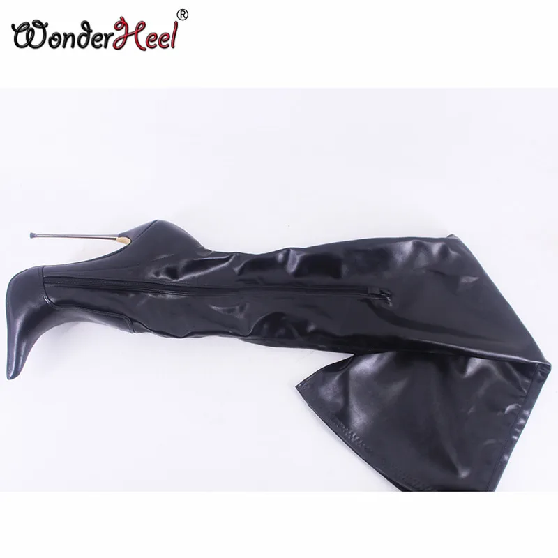 Wonderheel New 16cm Ultra Thin Metal heel Extreme high heel Matt Leather Pointed Toe Sexy Crotch Boots Nightclub Over Knee Boots