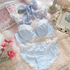 Girls underwear fresh blue water soluble lace bra panties set bows gathered large size steel ring push up lingerie suit