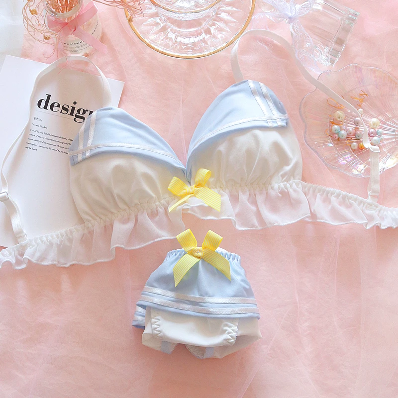 Wriufred Japanese loli style navy lingerie with panties suit sweet and cute sailor moon underwear cos two-dimensional bra set