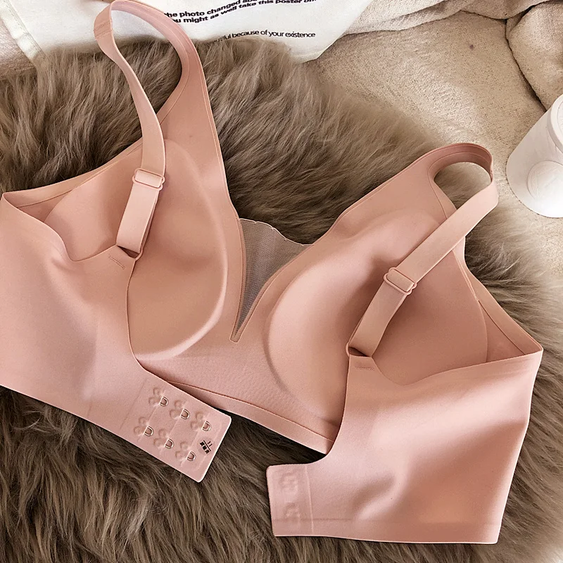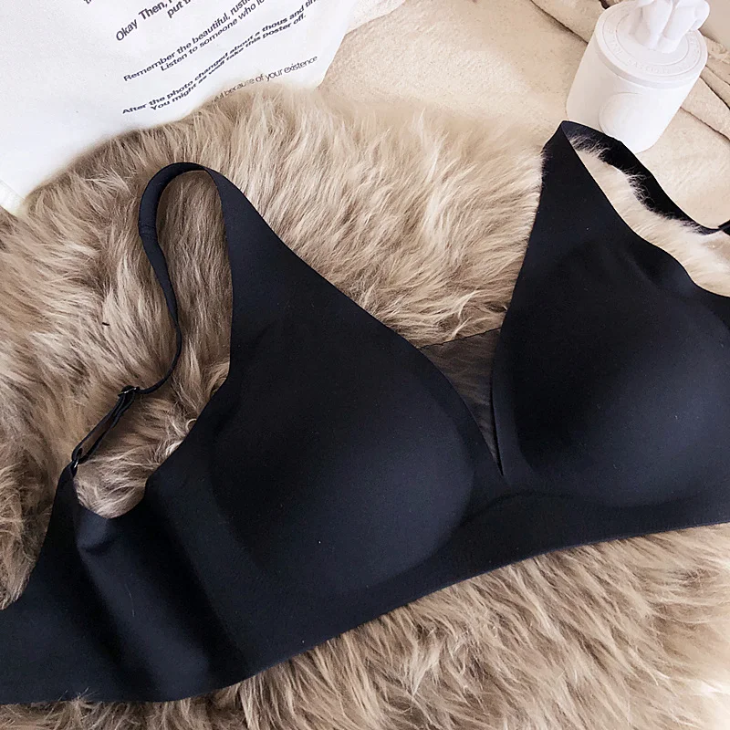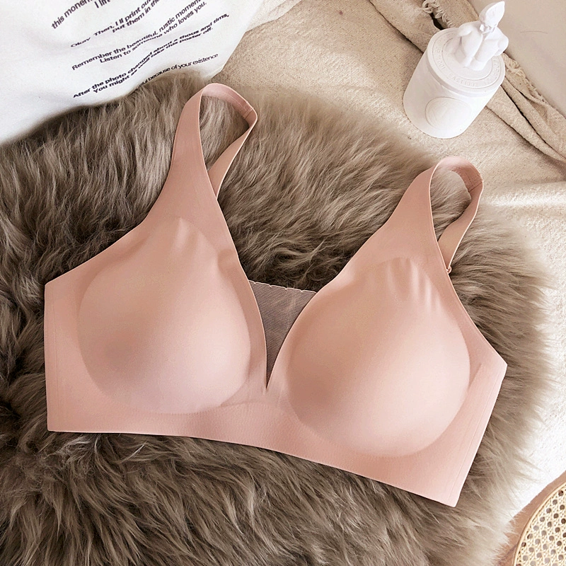 Wriufred Jelly bar one-piece gather bra without steel ring seamless underwear comfortable and breathable latex cotton bralette