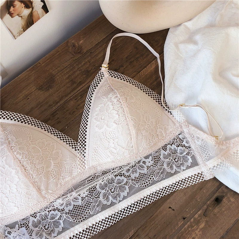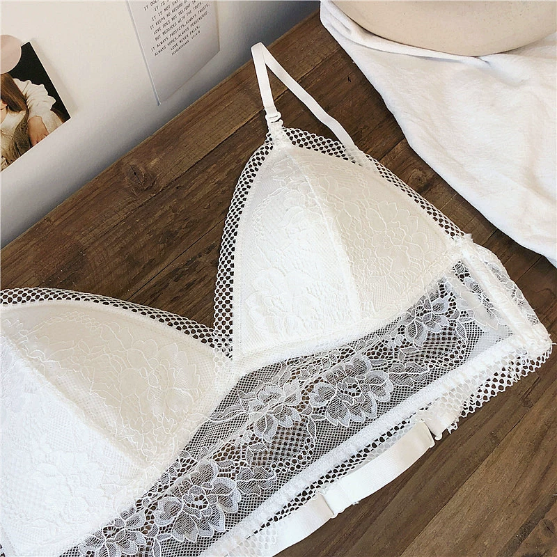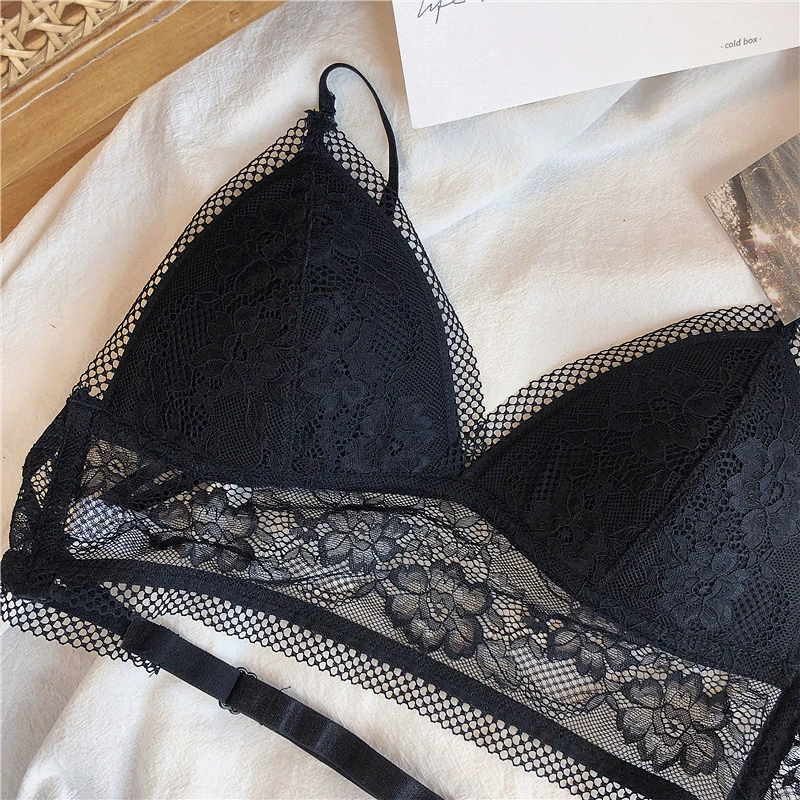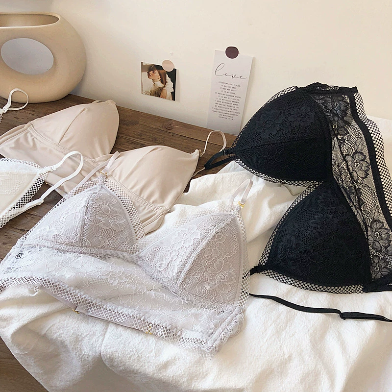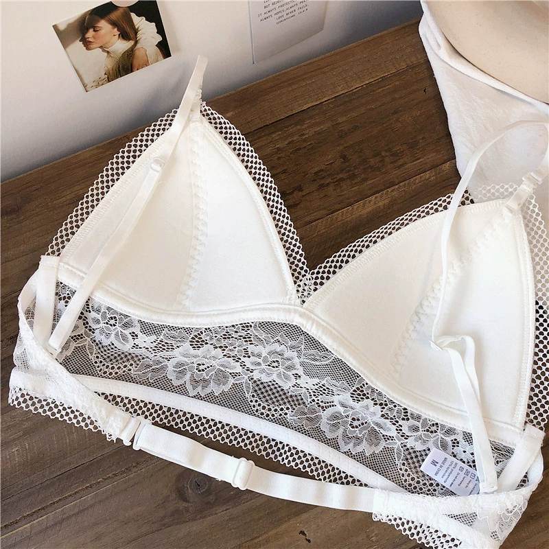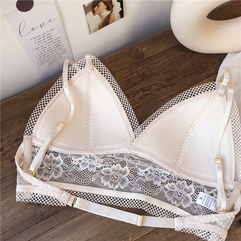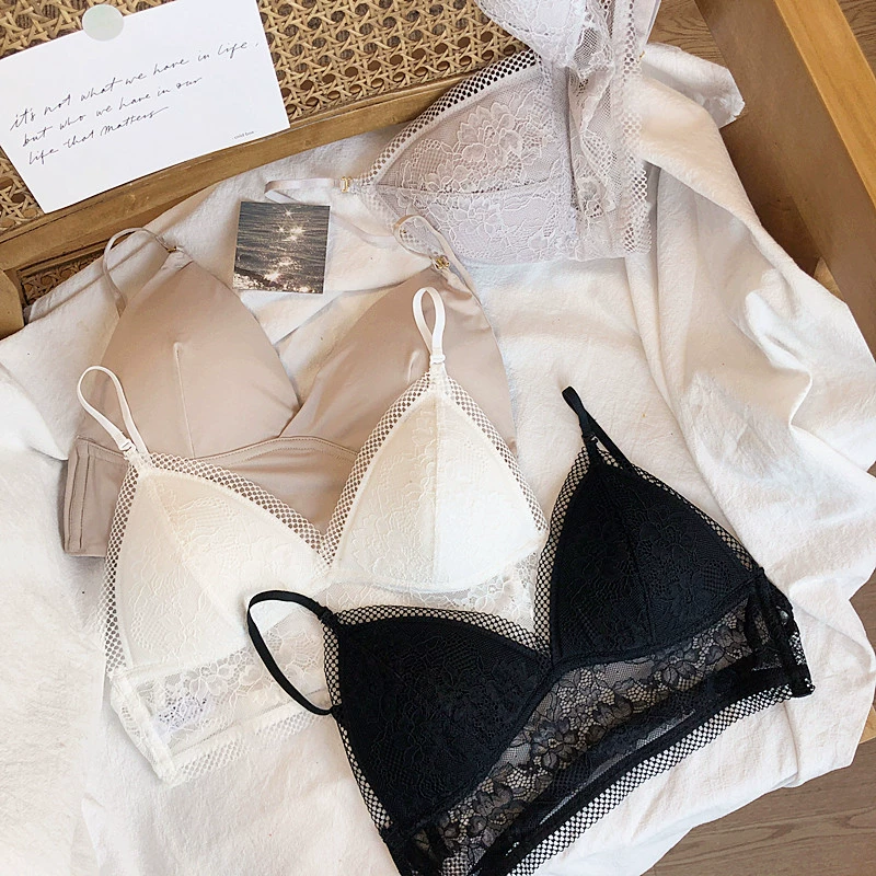 Wriufred Lace sexy bras without steel ring triangle cup bralette beautiful back women’s underwear outer wear plus size lingerie