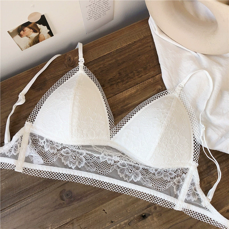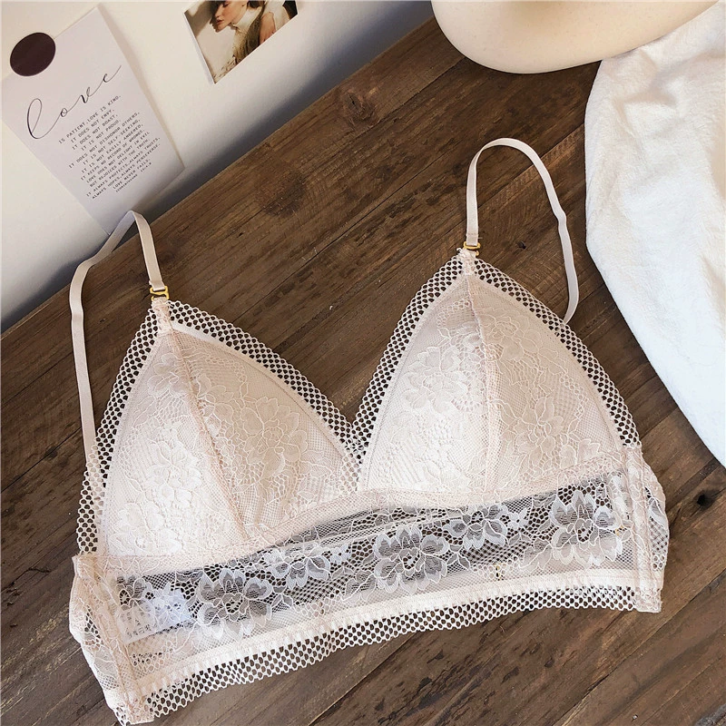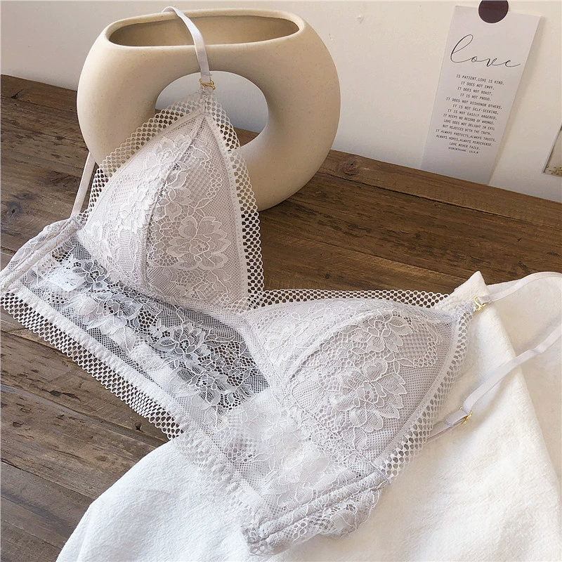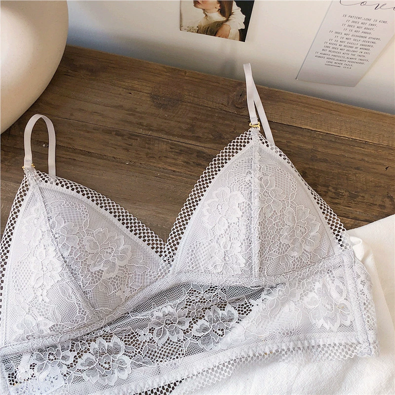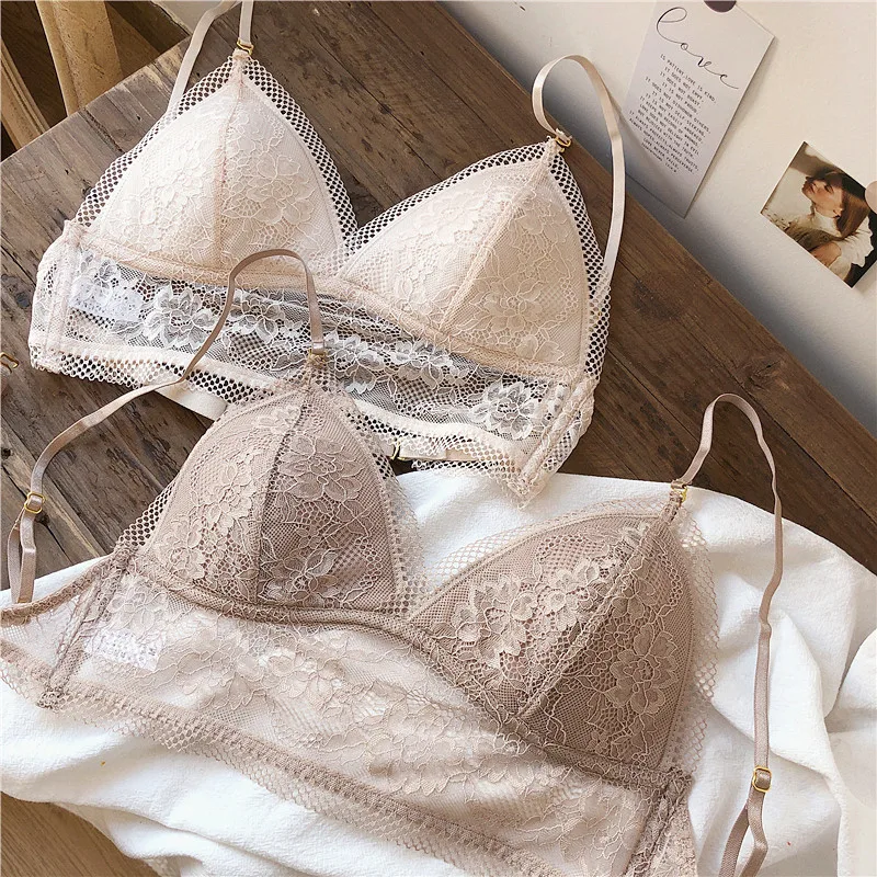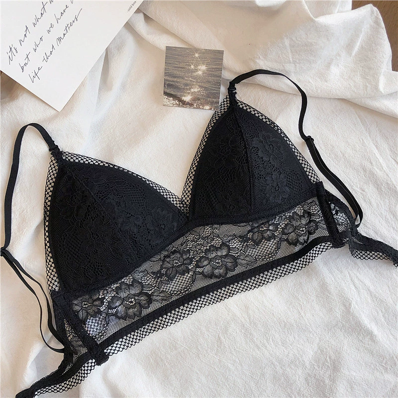 Wriufred Lace sexy bras without steel ring triangle cup bralette beautiful back women’s underwear outer wear plus size lingerie