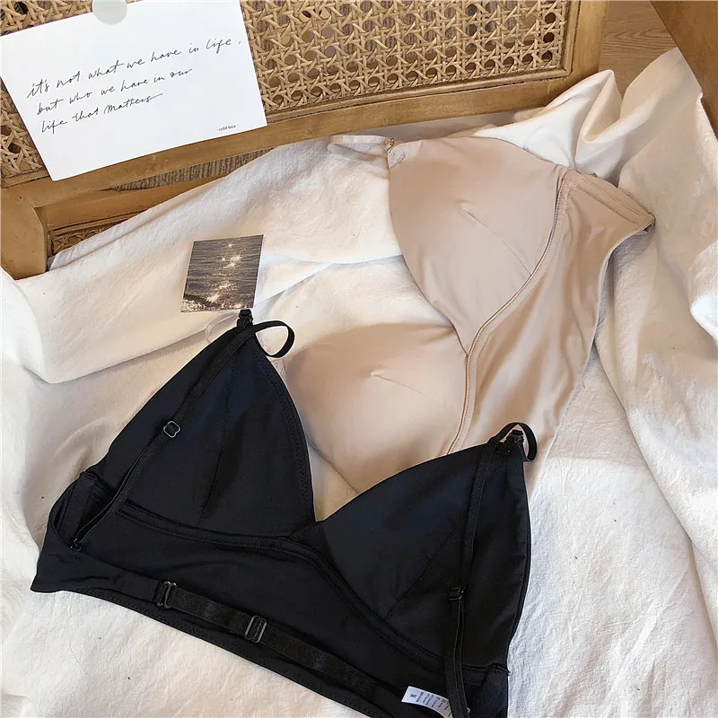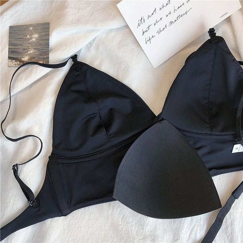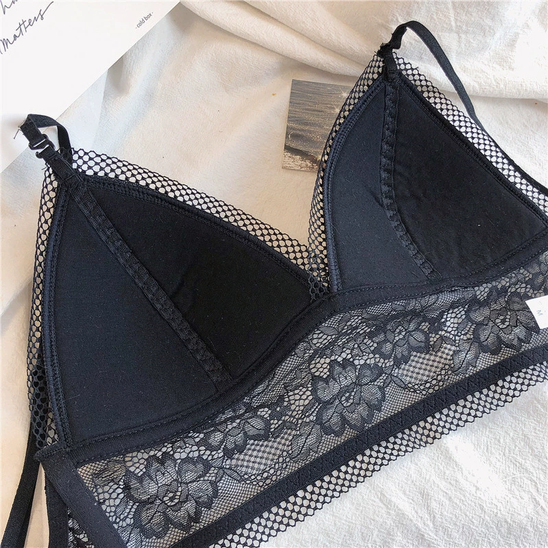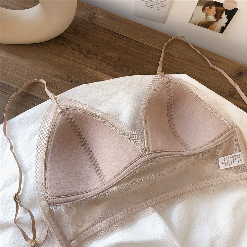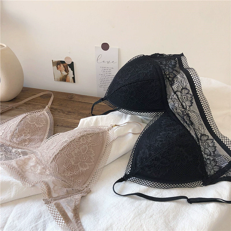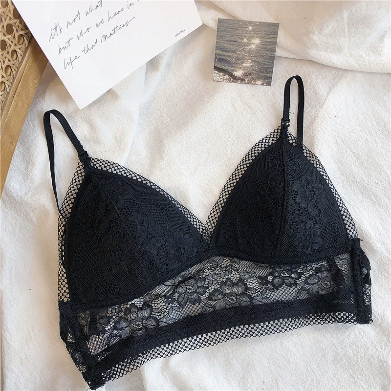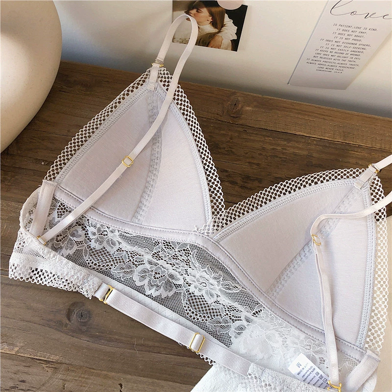 Wriufred Lace sexy bras without steel ring triangle cup bralette beautiful back women’s underwear outer wear plus size lingerie