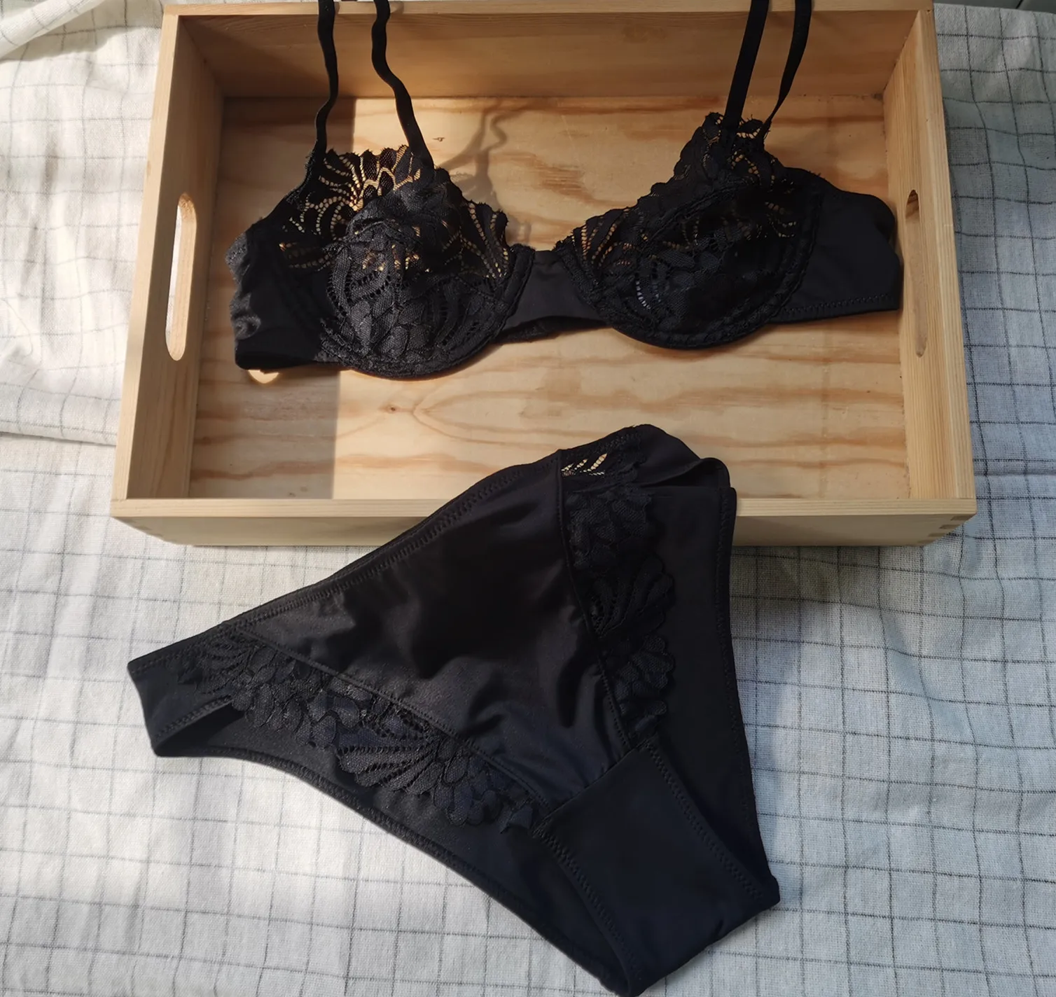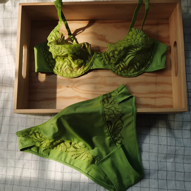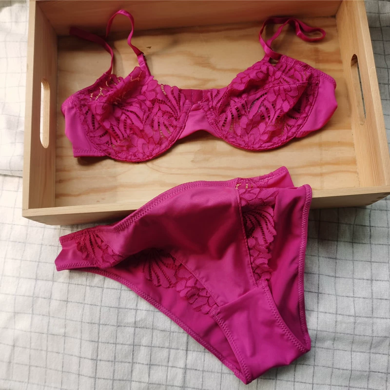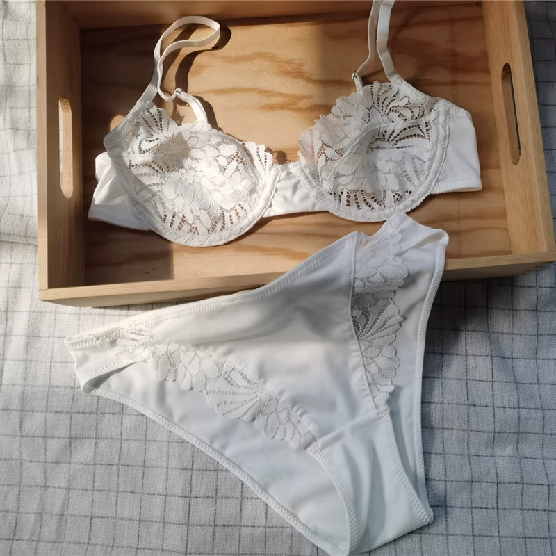 New lace underwear women’s thin lingerie underpants non-sponge soft steel ring gathers breathable bra briefs set