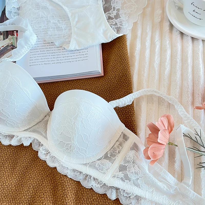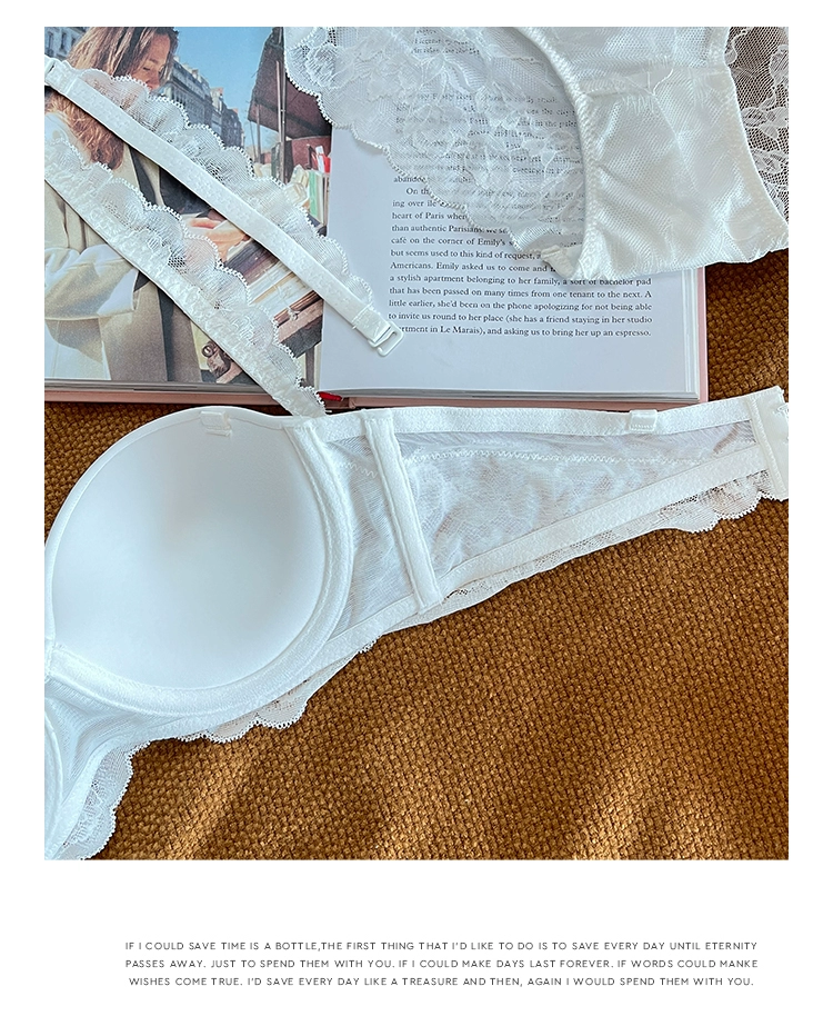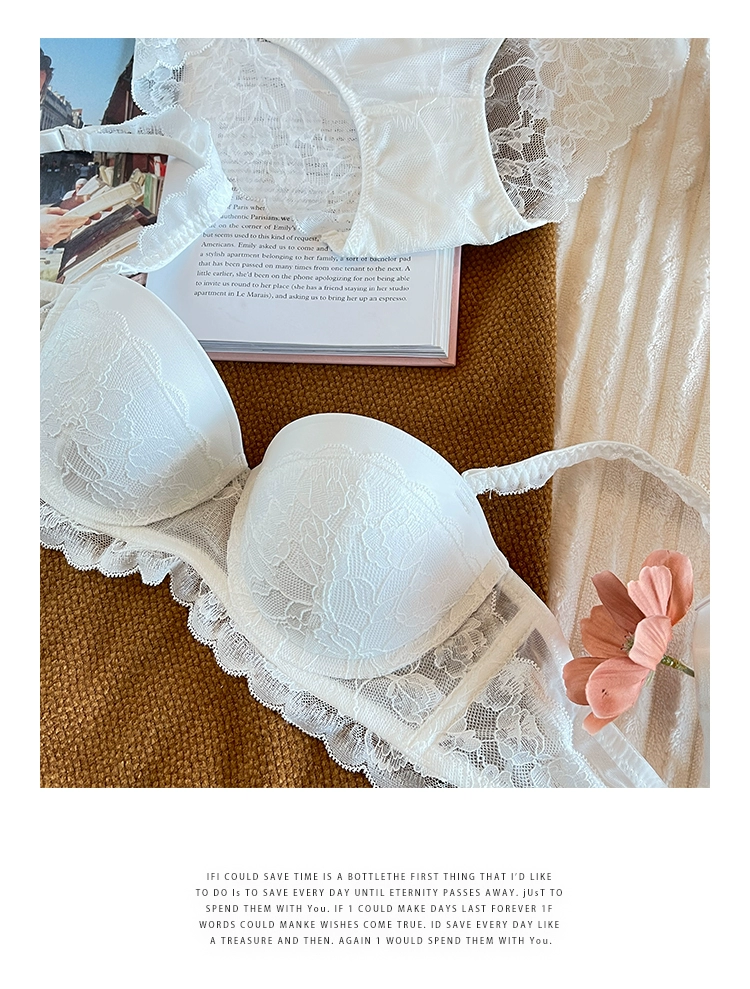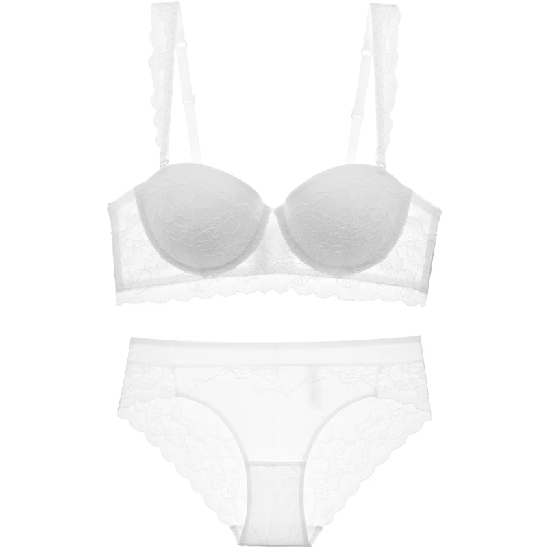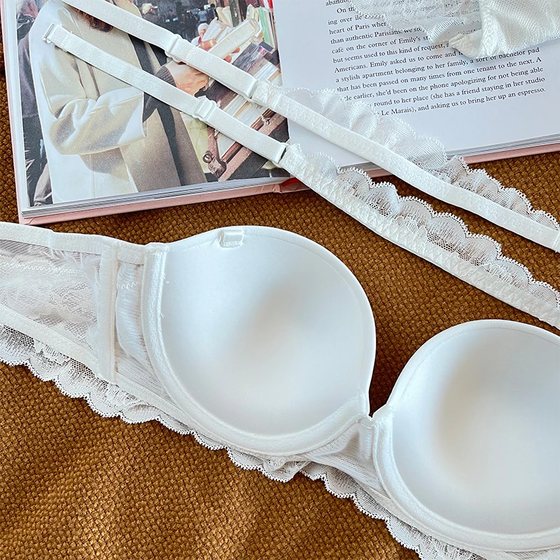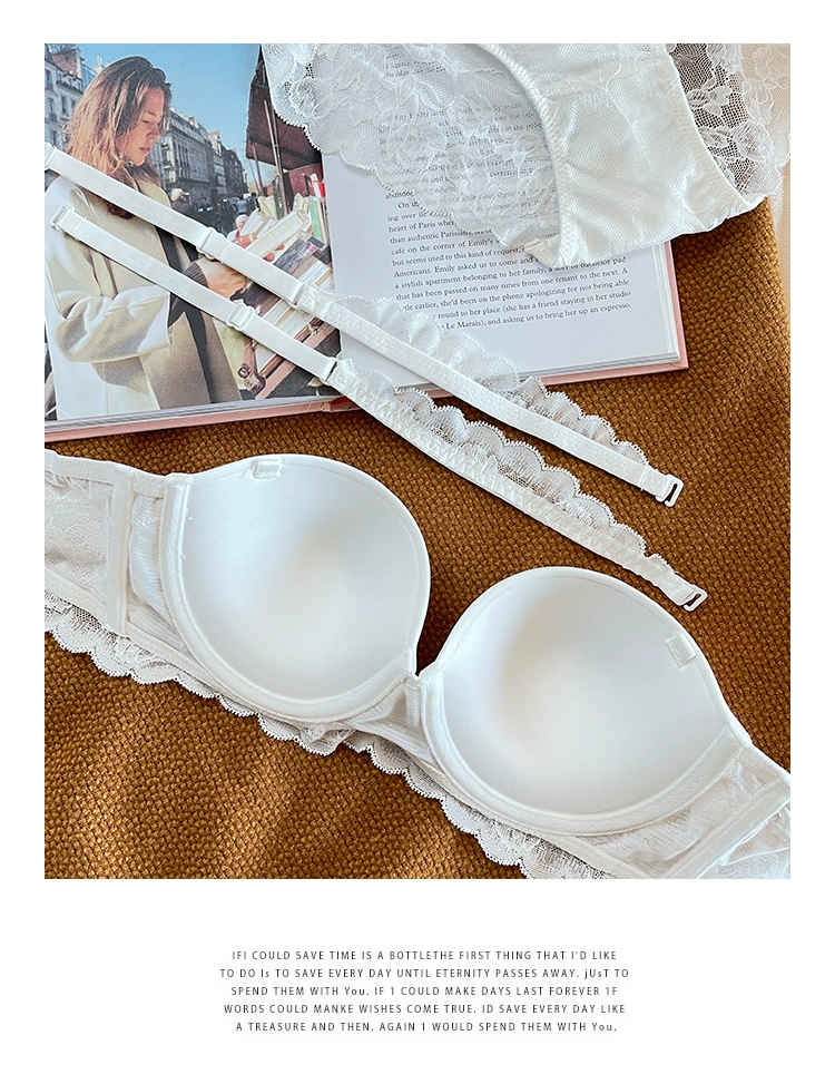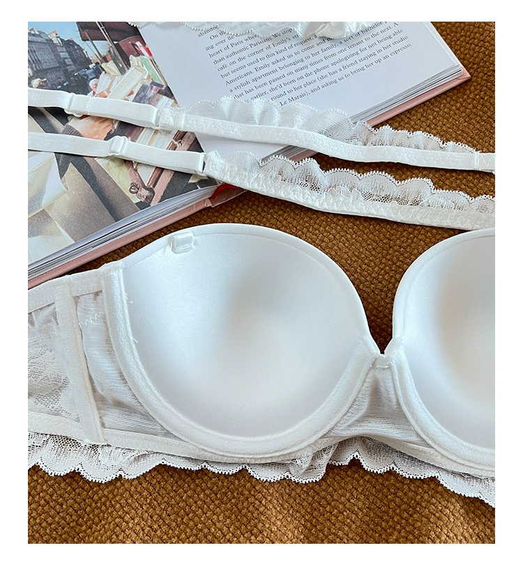White gathered strapless underwear bralette suit girl lace sexy plus size women non-slip bra panties set