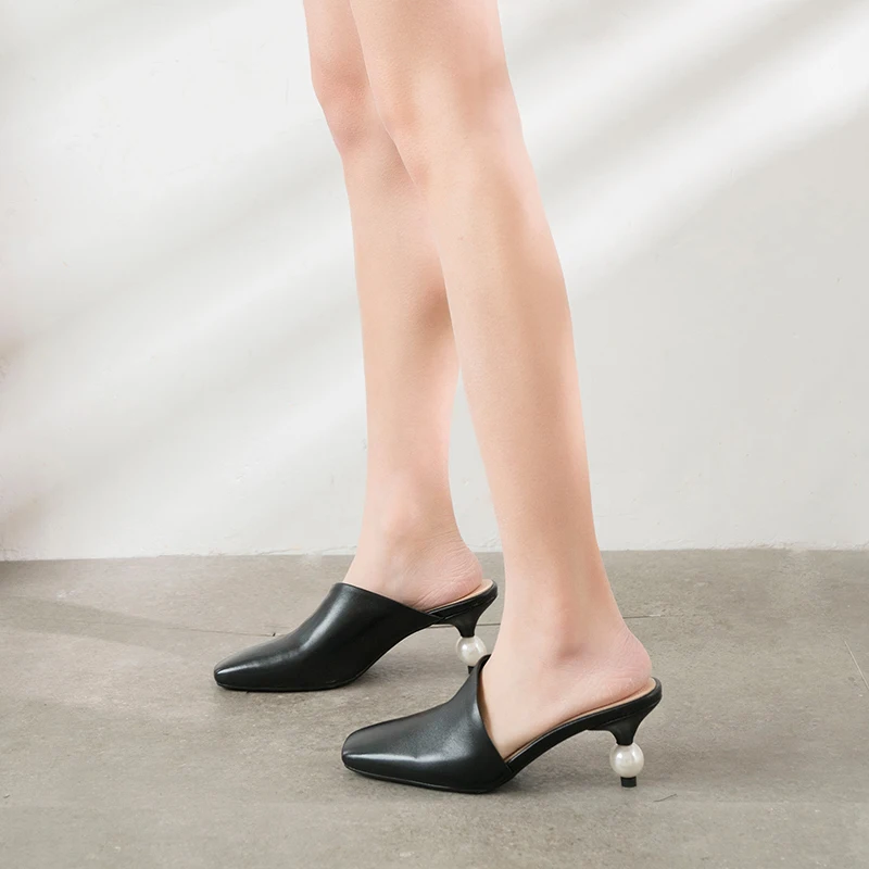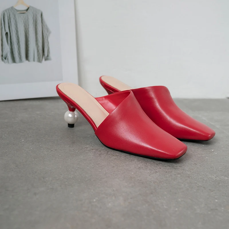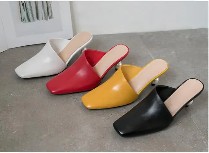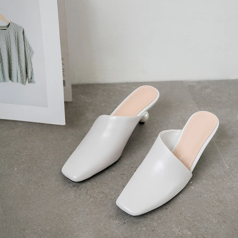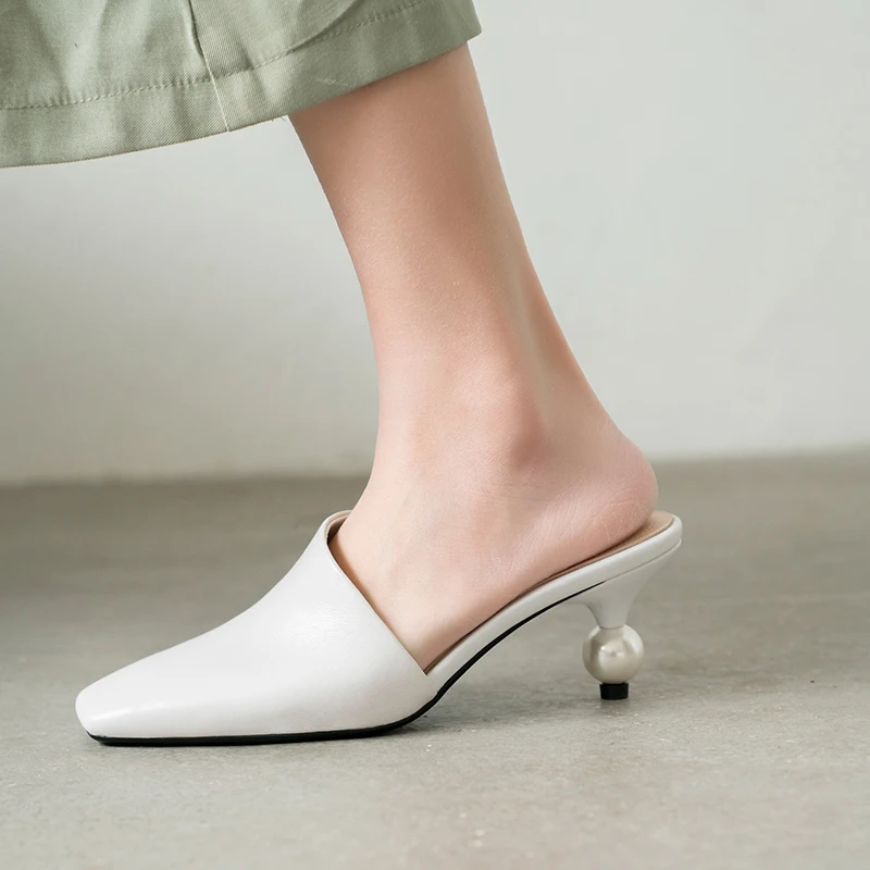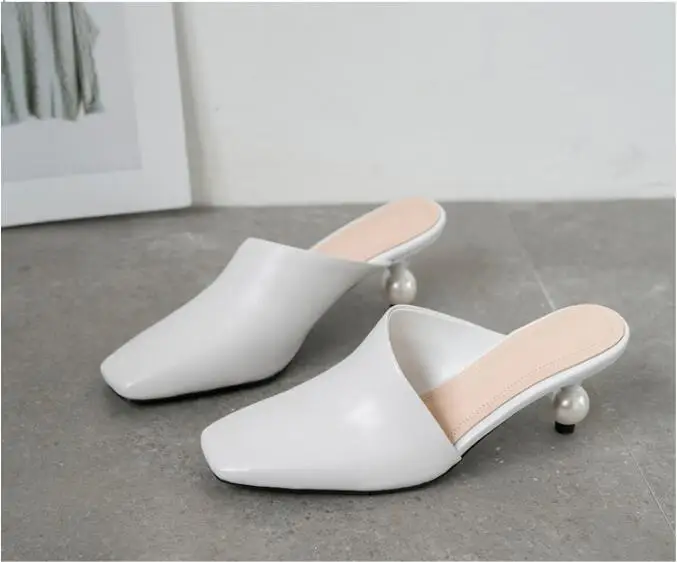 XGRAVITY 2021 New Sexy Chic Mules Square Toe Dress Slippers Fashion Pearl Strange Heel Ball Heel Women Sandals Lady Shoes B124