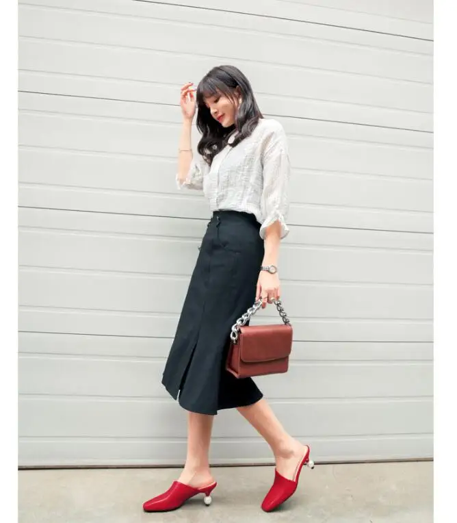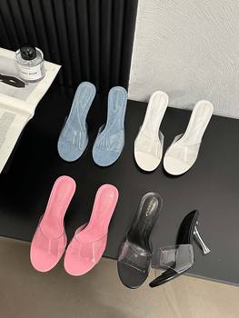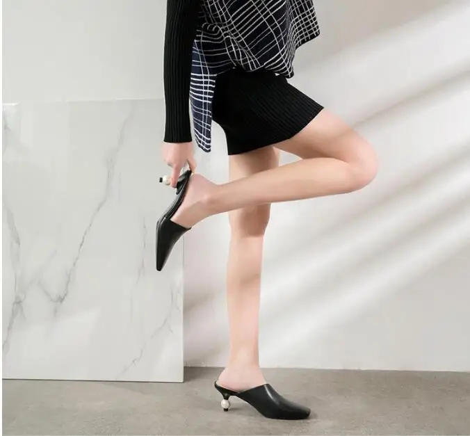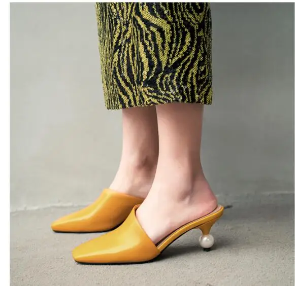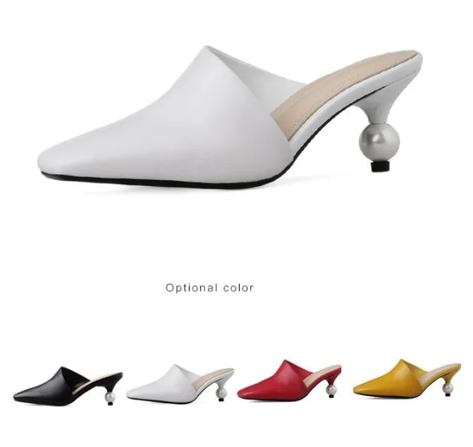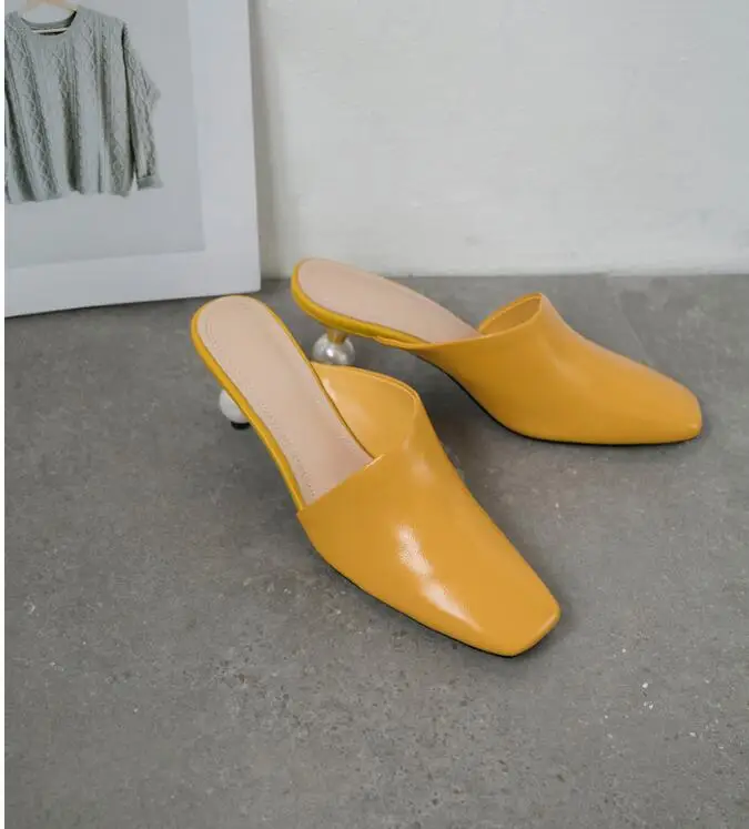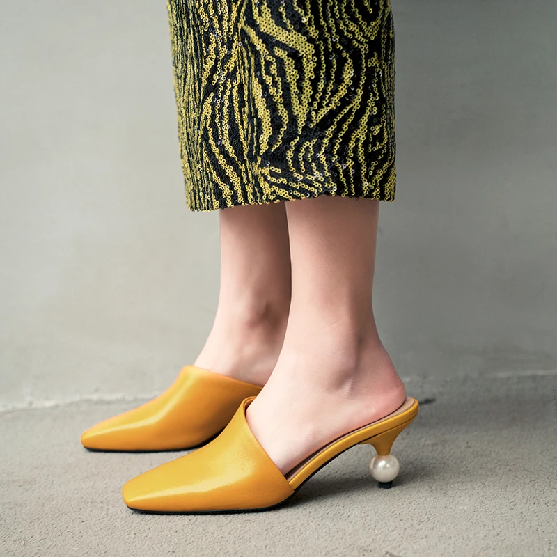 XGRAVITY 2021 New Sexy Chic Mules Square Toe Dress Slippers Fashion Pearl Strange Heel Ball Heel Women Sandals Lady Shoes B124