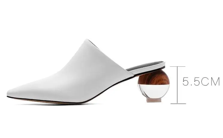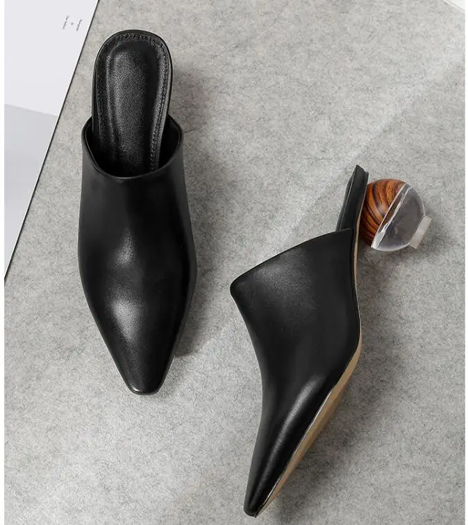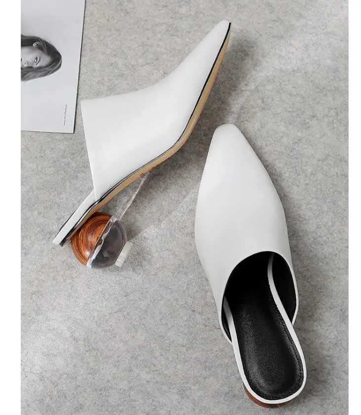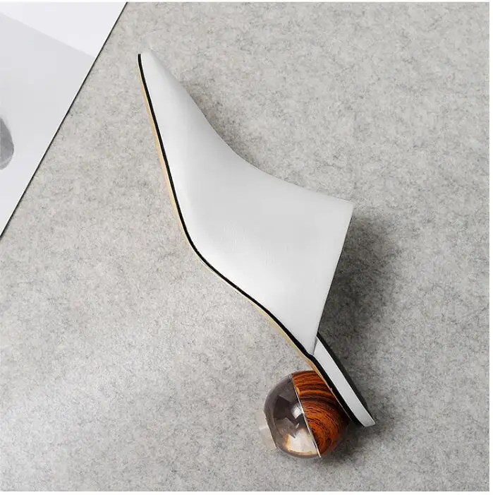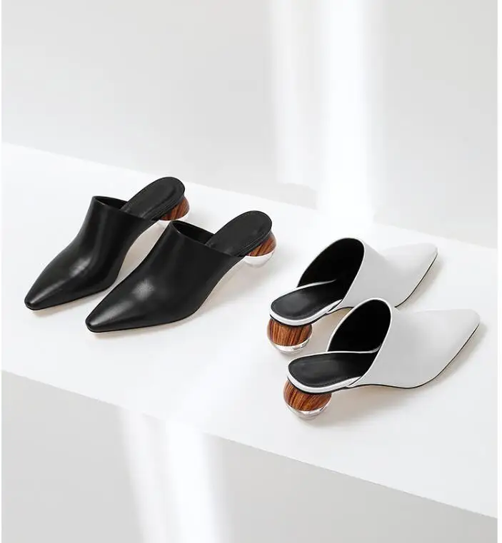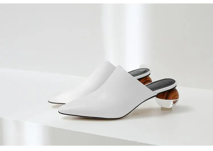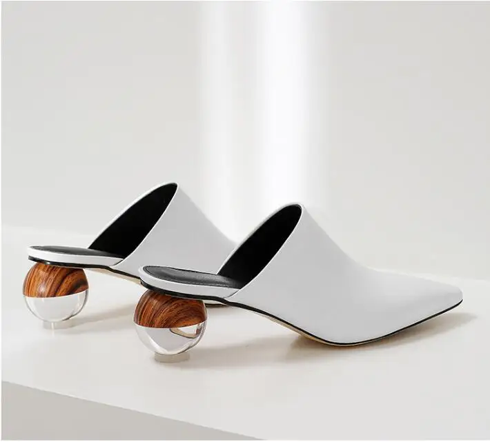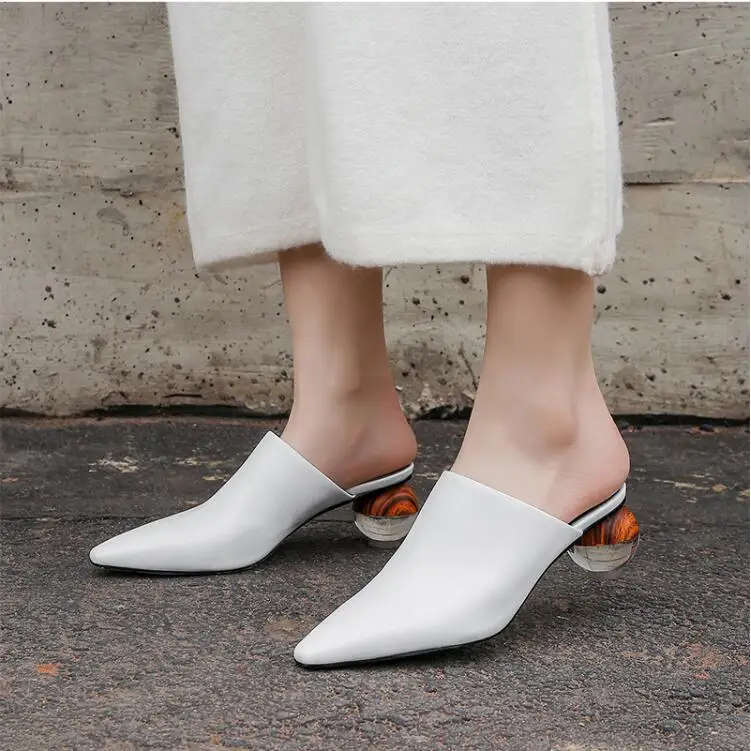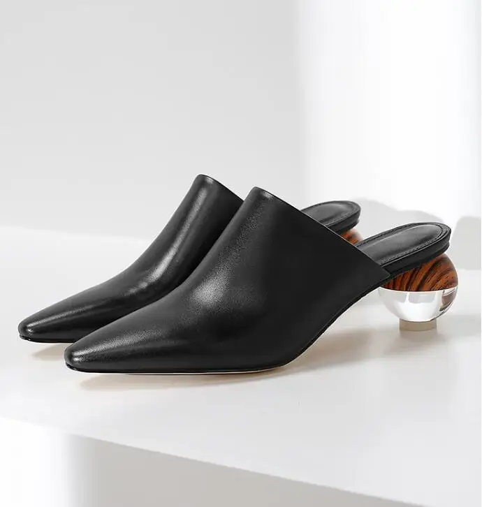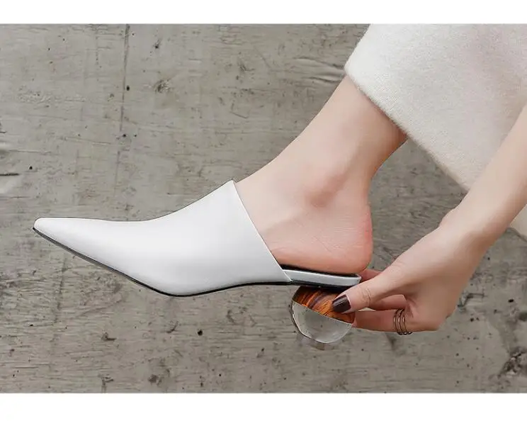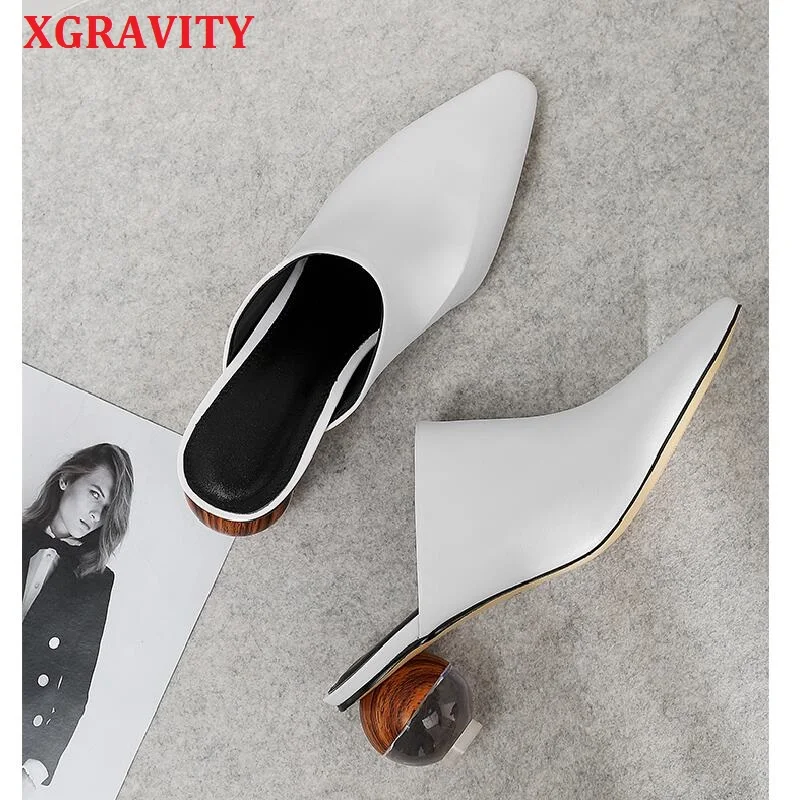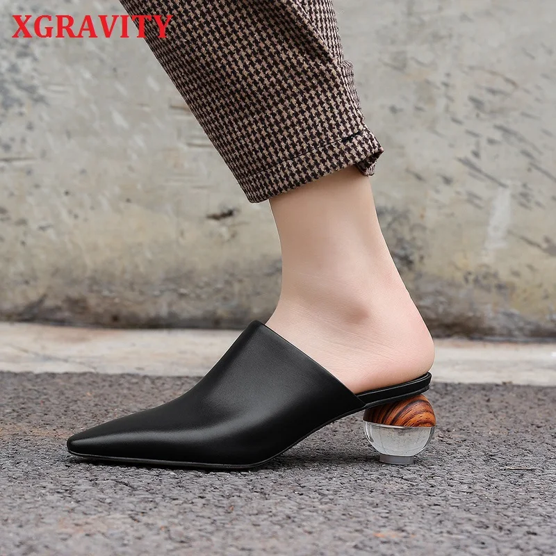 XGRAVITY Cow Genuine Leather Pointed Toe Dress Slippers Fashion Transparent Strange Heel Ball Heel Women Sandals Lady Shoes B123