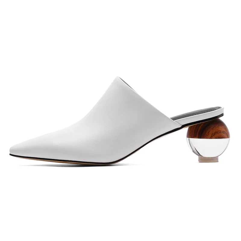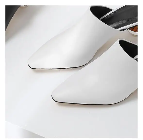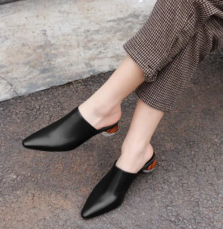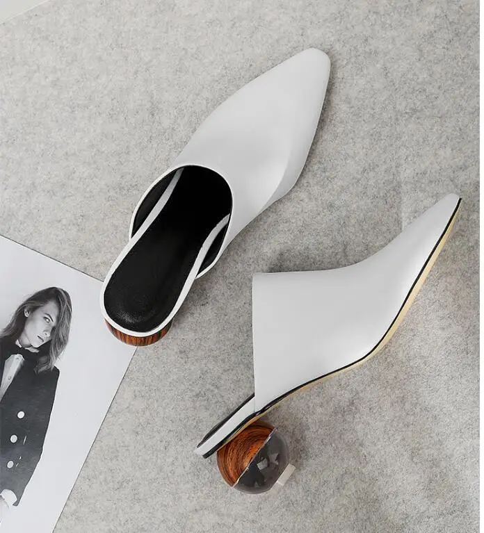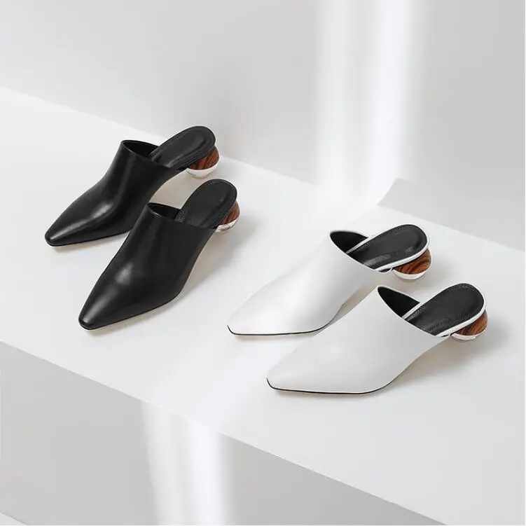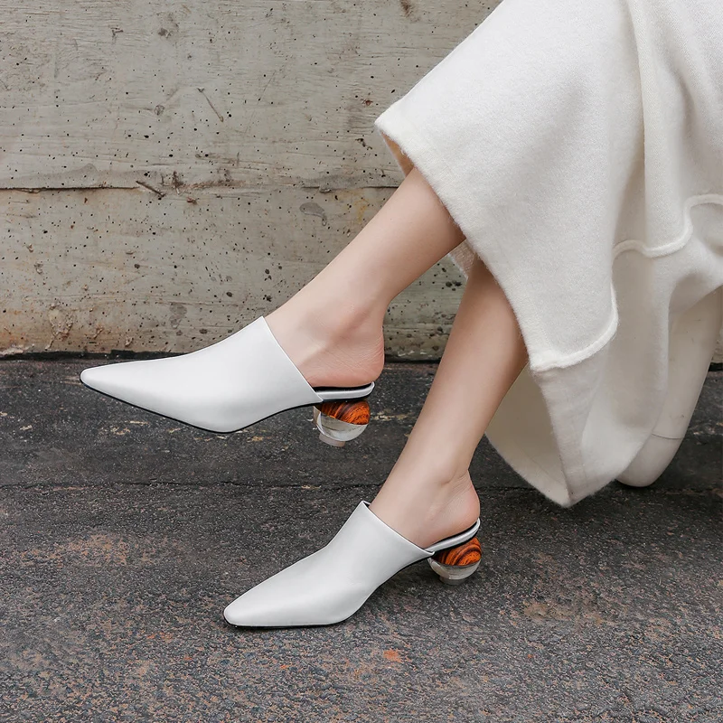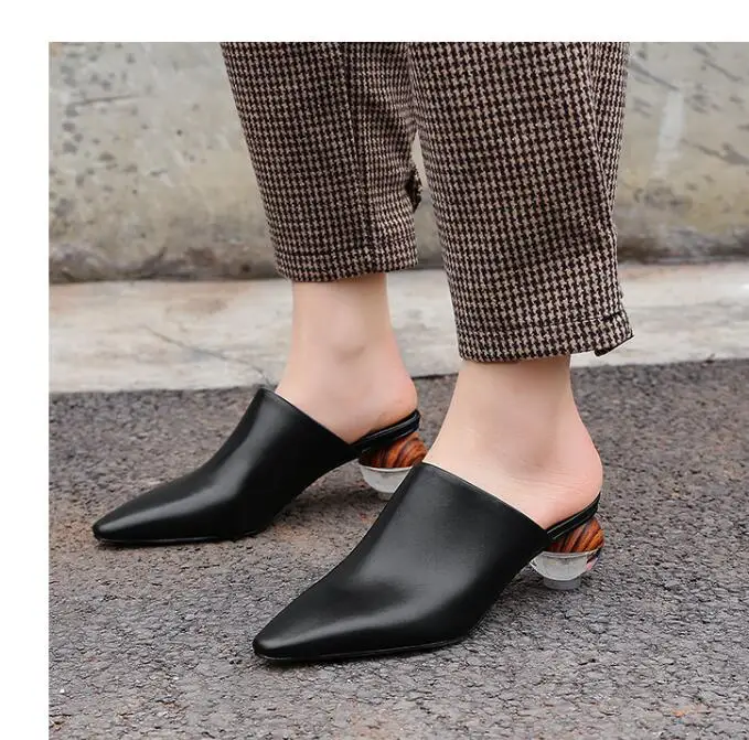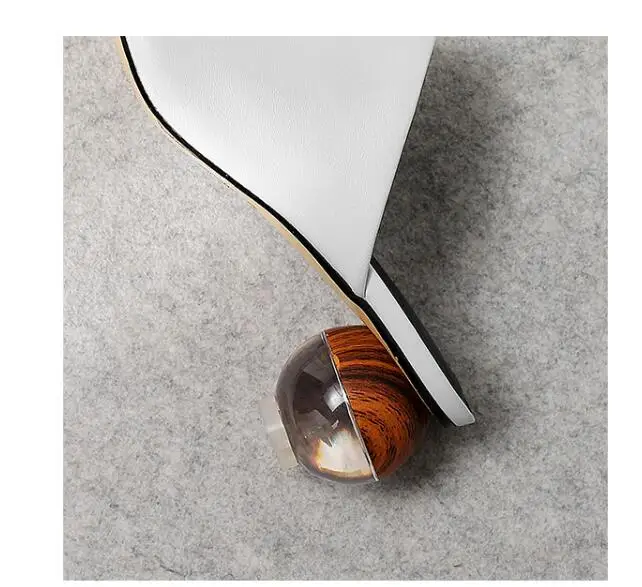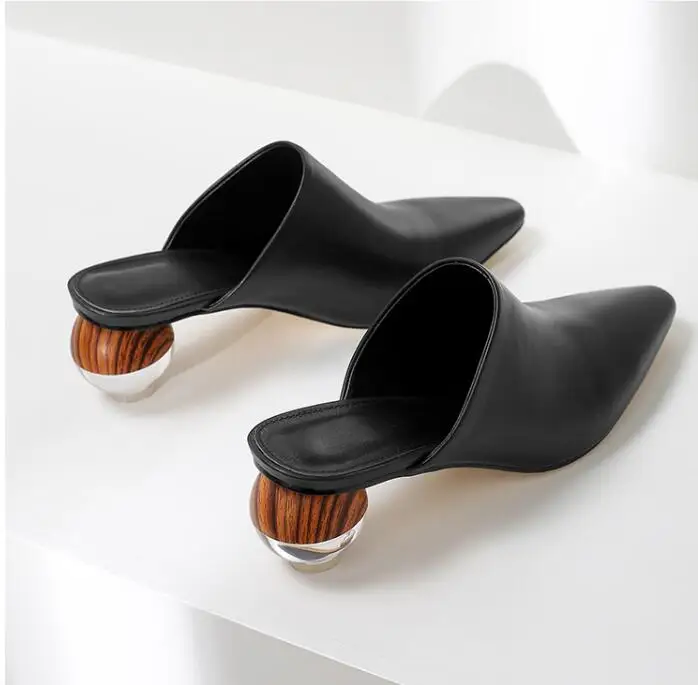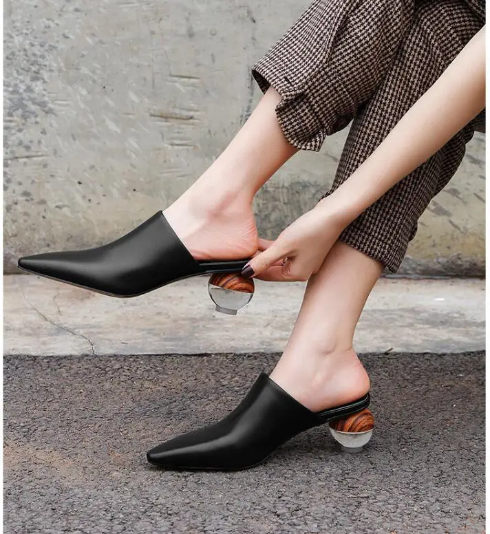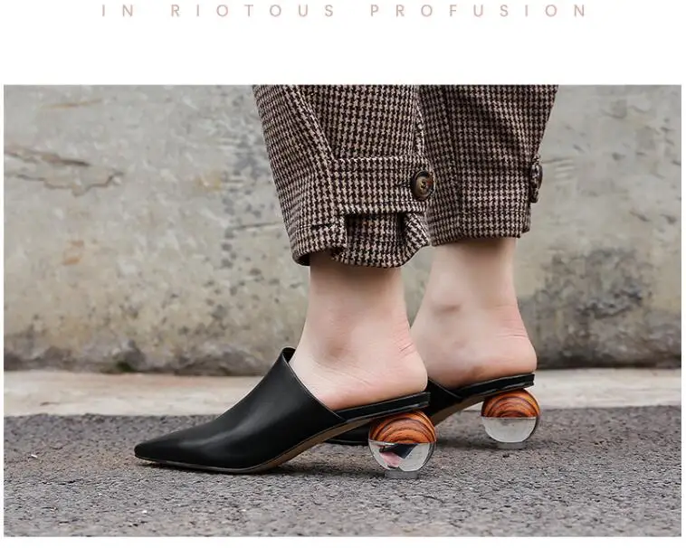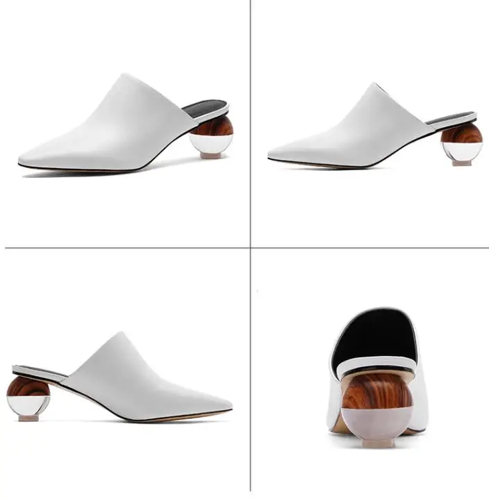 XGRAVITY Cow Genuine Leather Pointed Toe Dress Slippers Fashion Transparent Strange Heel Ball Heel Women Sandals Lady Shoes B123