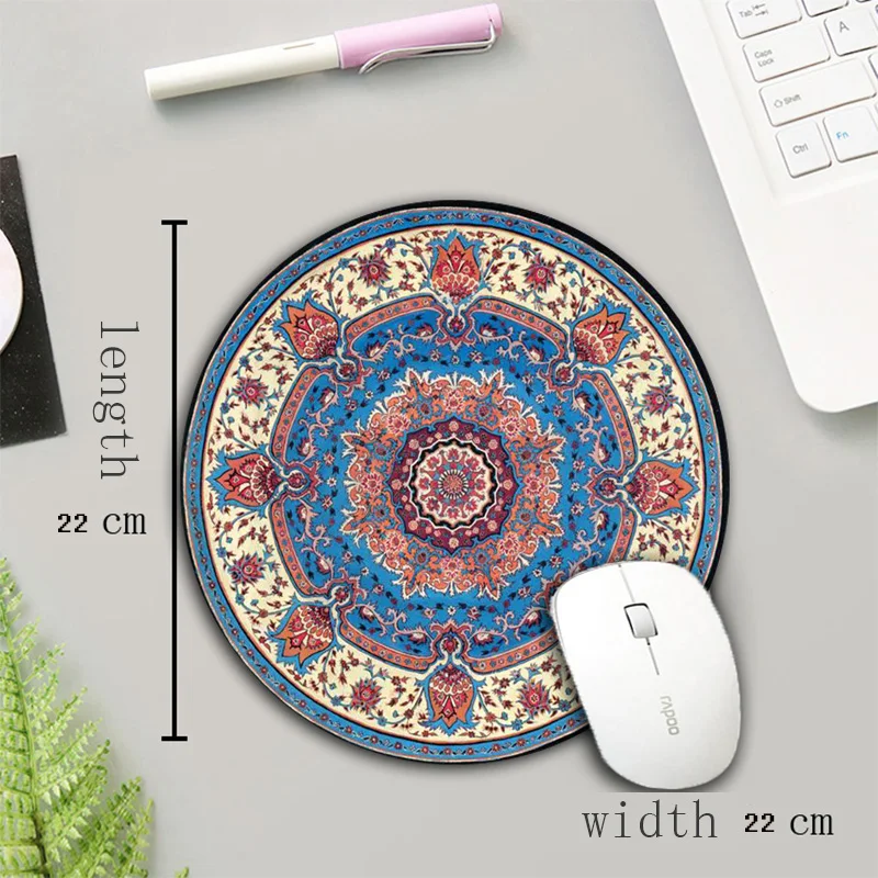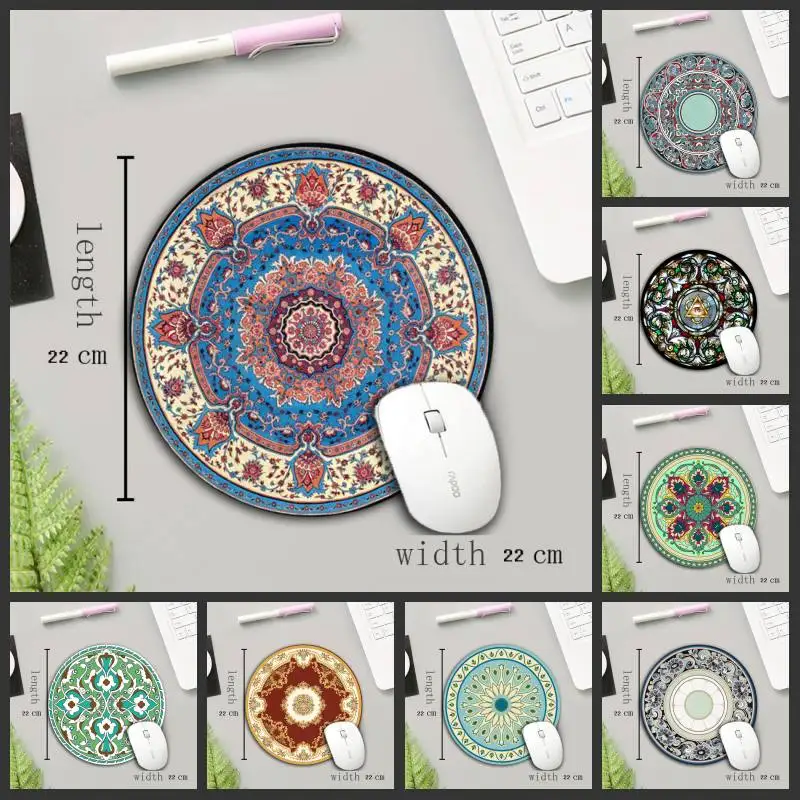 XGZ New Pattern 22×22 Cm Round Mouse Pad Rubber Carpet Office Desktop Pad Mat Persian Carpet Mousepad Game Gaming Player Mats