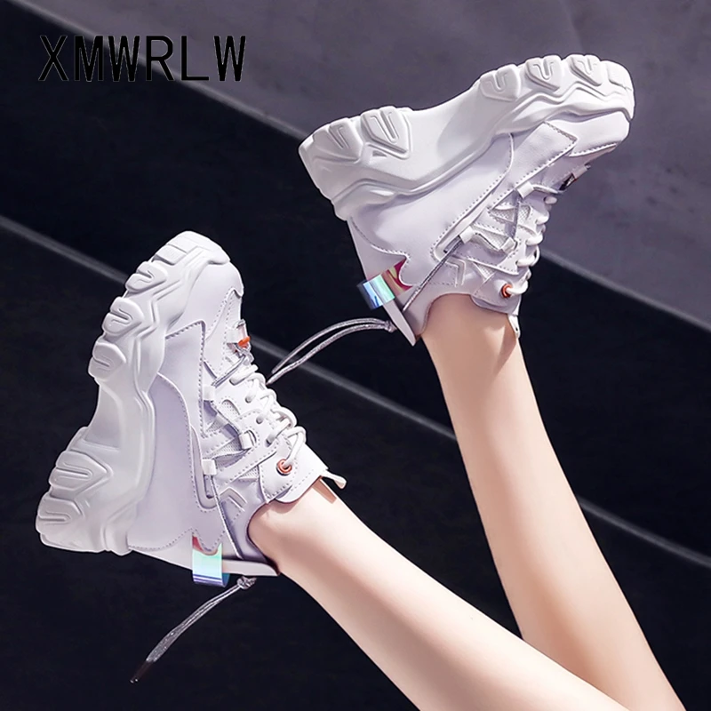 XMWRLW PU Leather Casual Hidden Heel Shoes For Women Spring Autumn Sneakers Women Wedges Shoe 2021 Autumn Ladies White Shoes