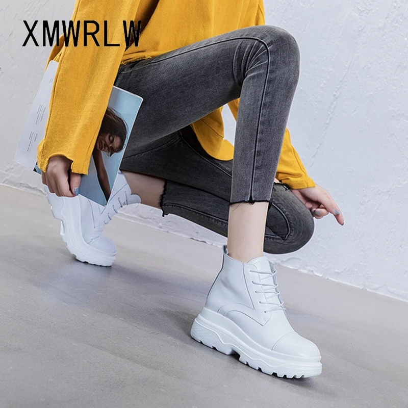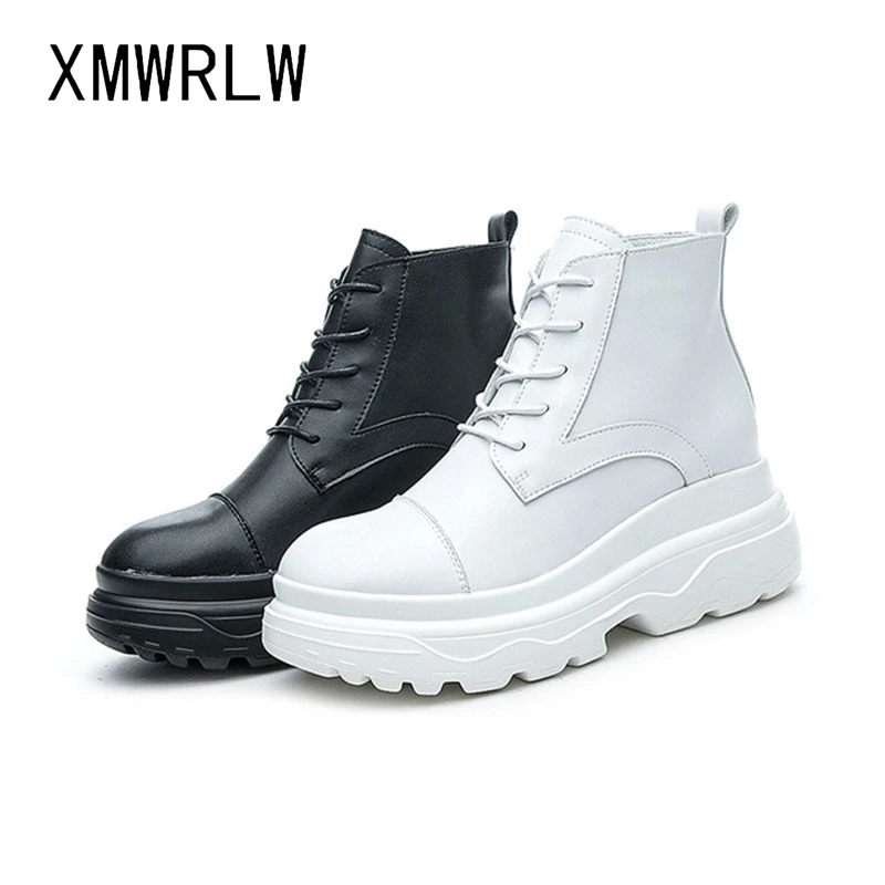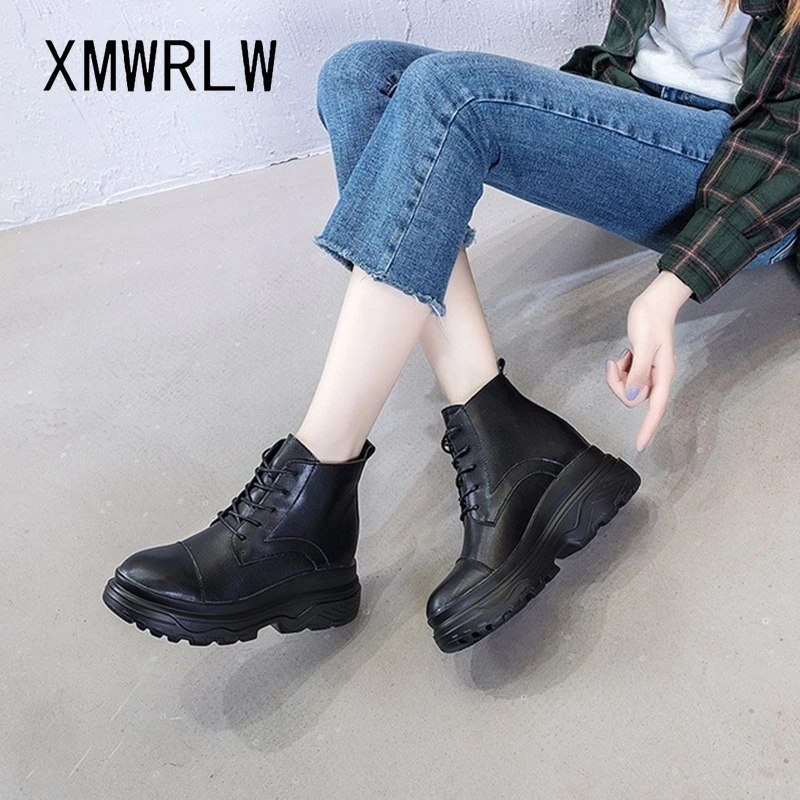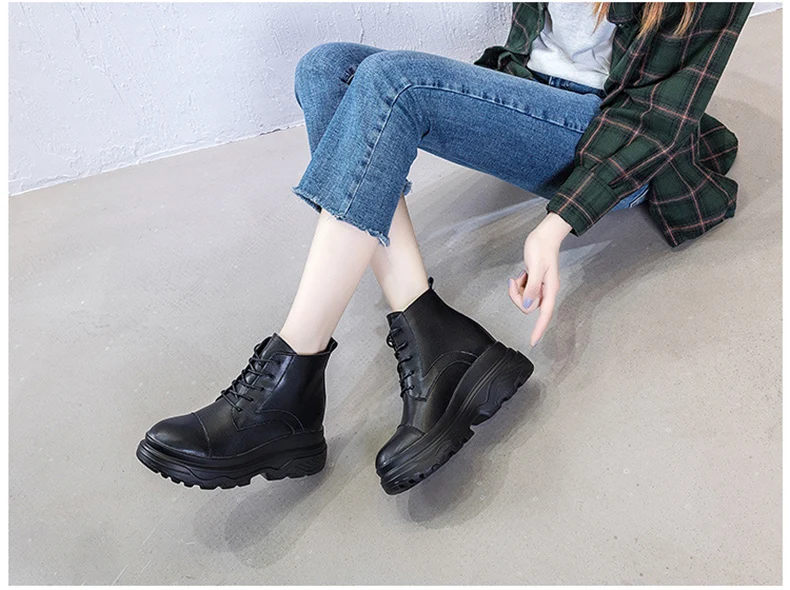 XMWRLW Women’s Ankle Boots Patent Leather Women Autumn Shoes Hidden Heels Ladies Boots Autumn Women Wedges Boot Platform Shoes