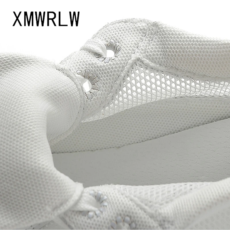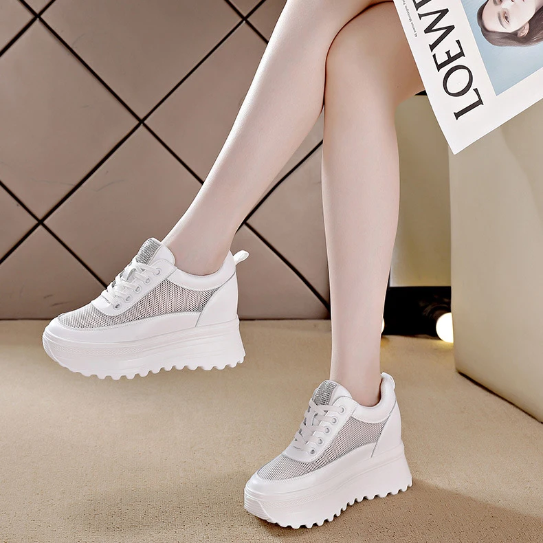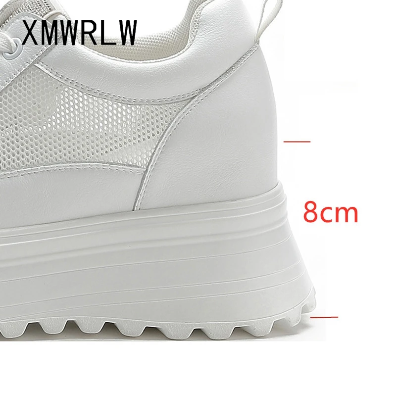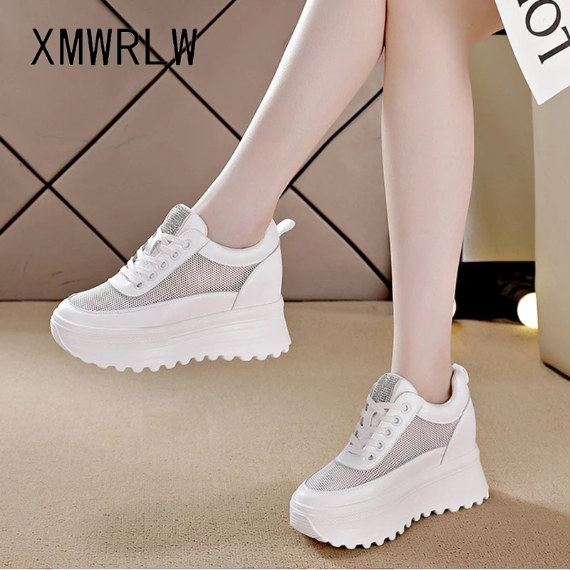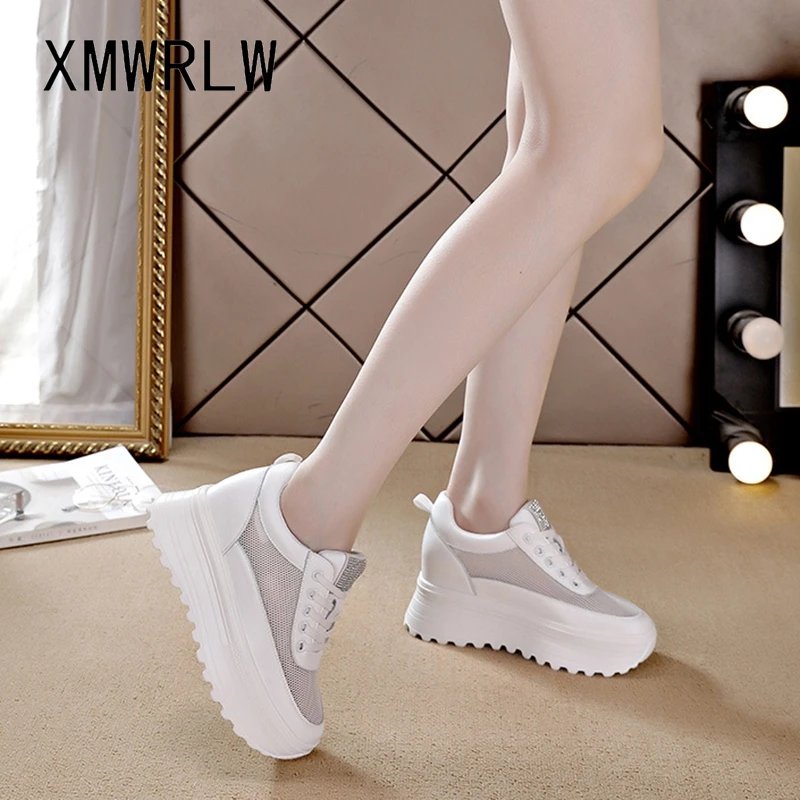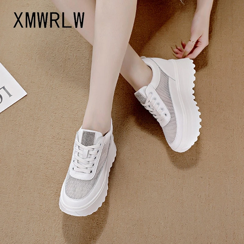 XMWRLW Women’s Chunky Sneakers 2021 Summer Genuine Leather Women Shoes Rhinestone Female Hidden Heel Sneakers Woman White Shoes