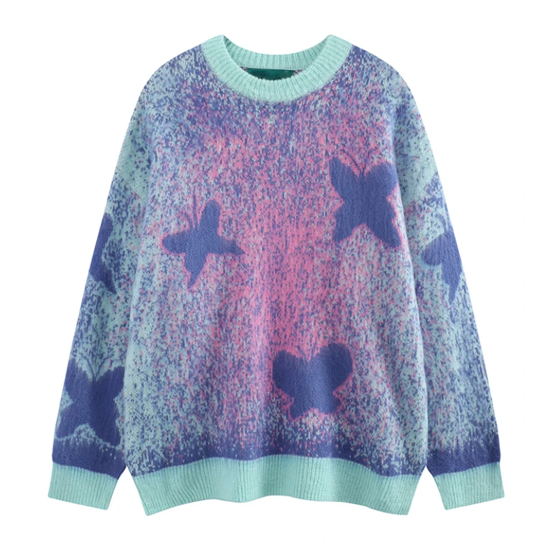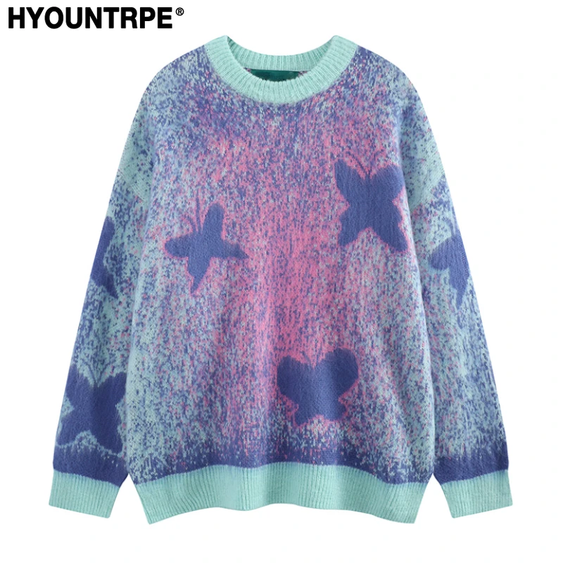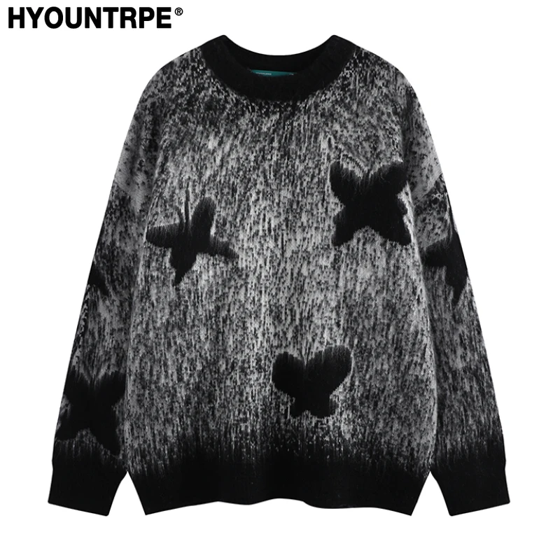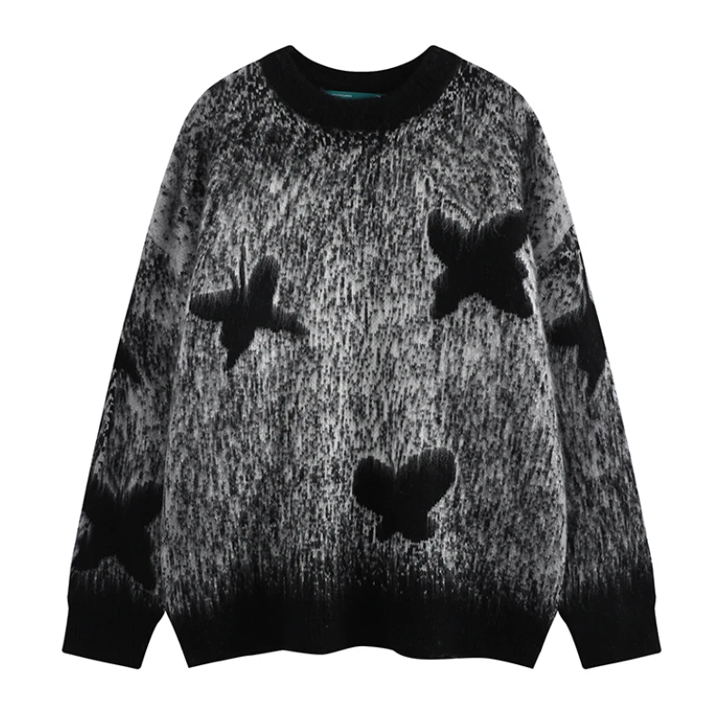 Y2K Knitted Sweater Unisex Harajuku Oversized Sweater Casual Butterfly O-neck Pullover Streetwear Loose Sweaters Jumper Knitwear