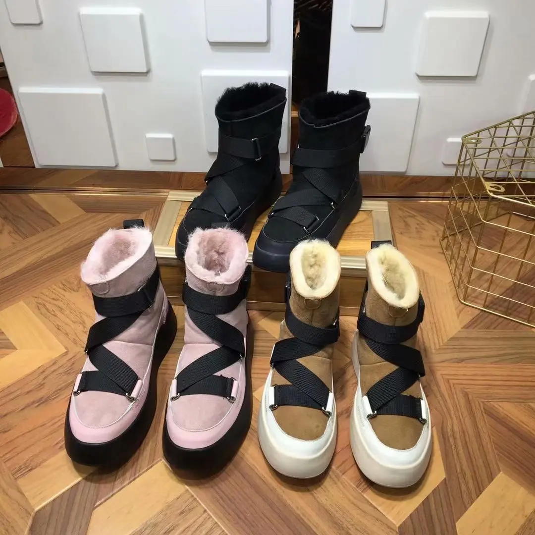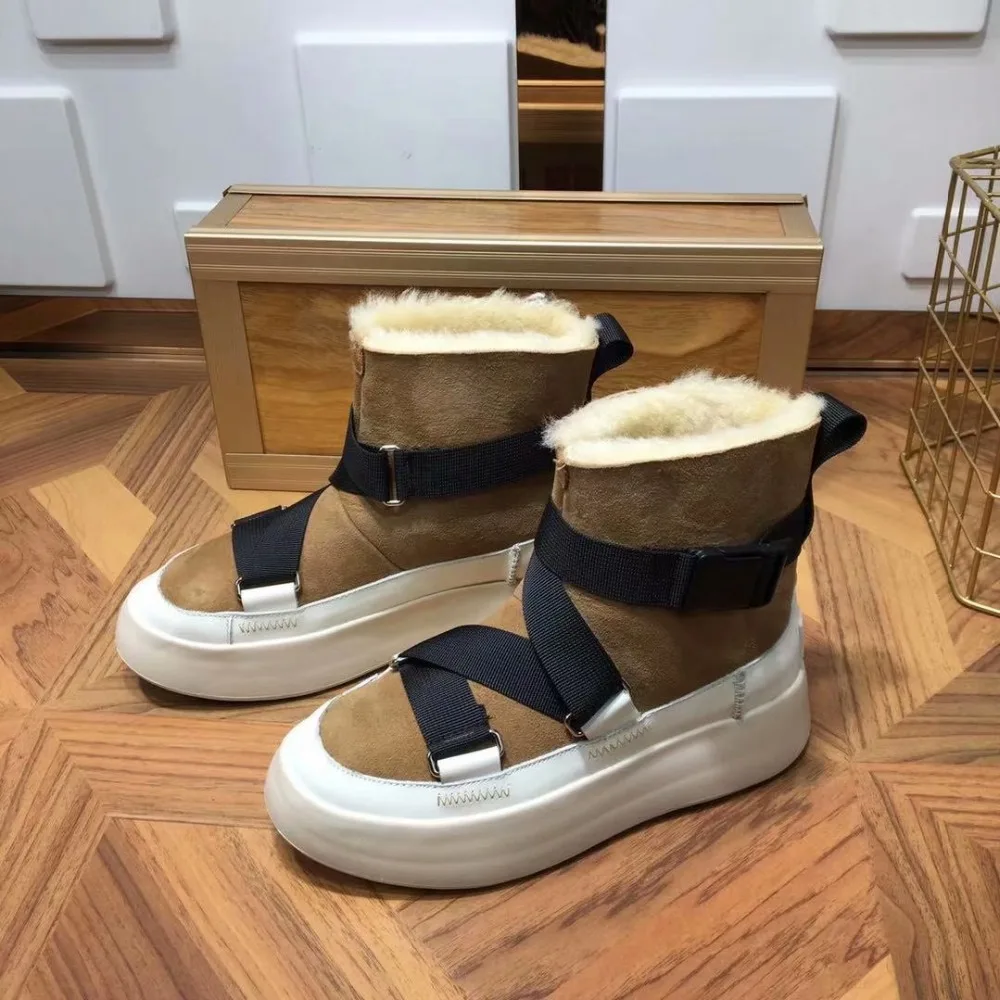 Zapatos de mujer Winter Warm Plush Platform Fur Snow Boots Woman Black Brown Flock Chaussures Femme Short Ankle botines