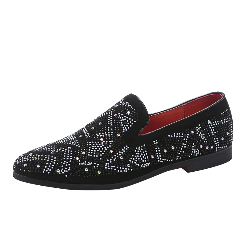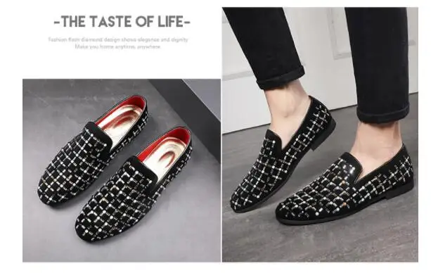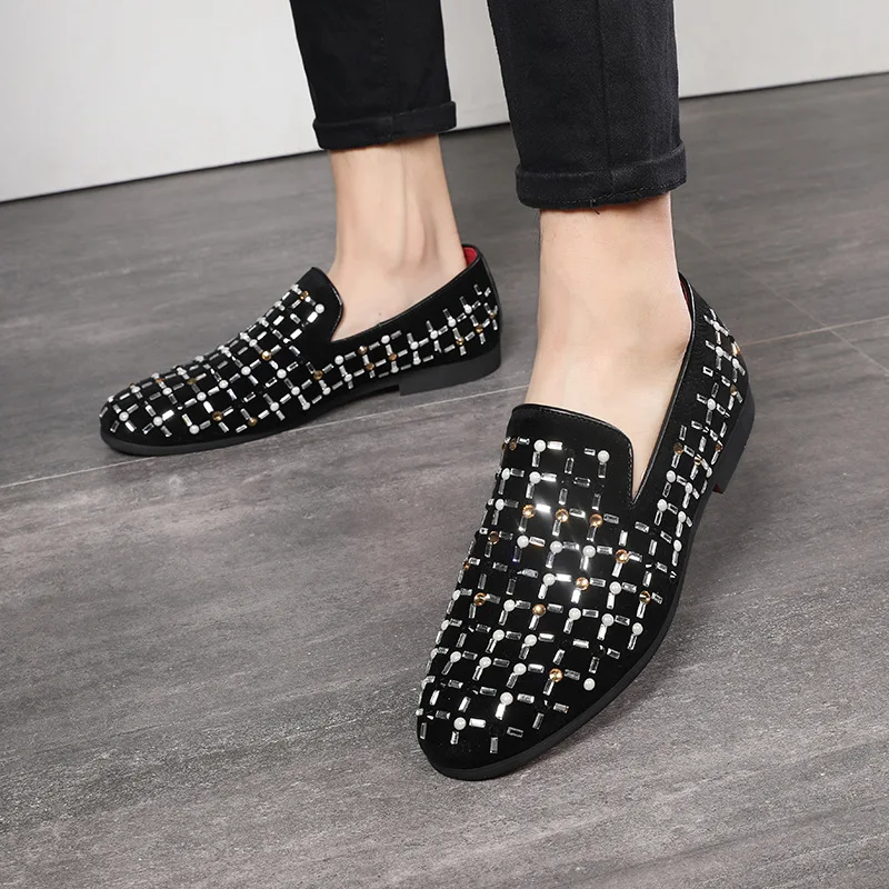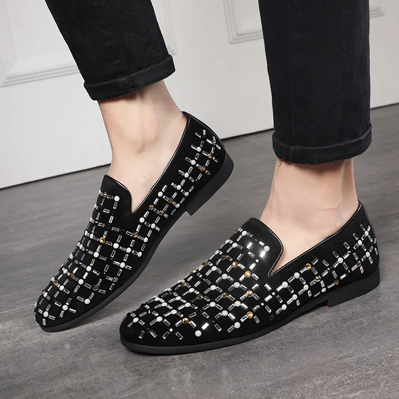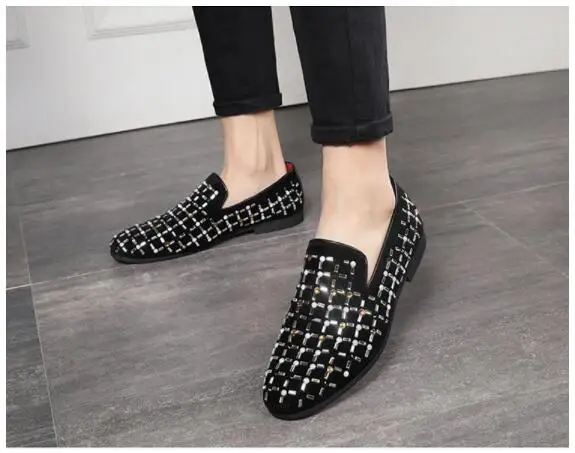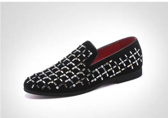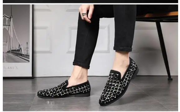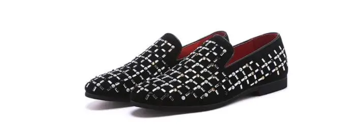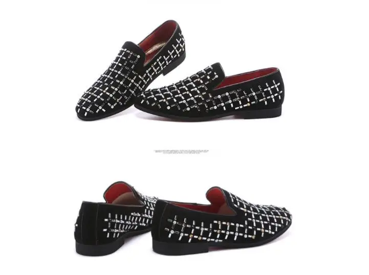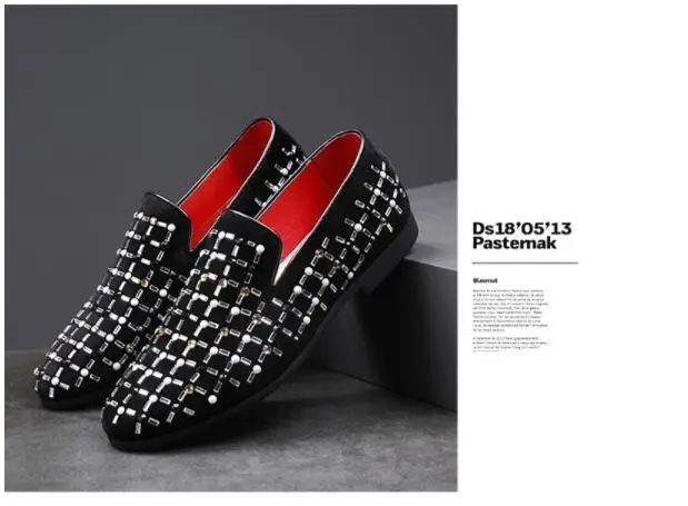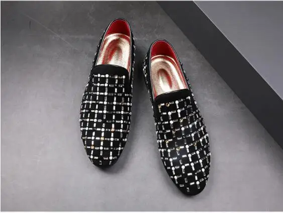 Zapatos hombre cystal hidden heel shoes for men slip on black spiked loafers glitter leather sapato social shoes men male luxury