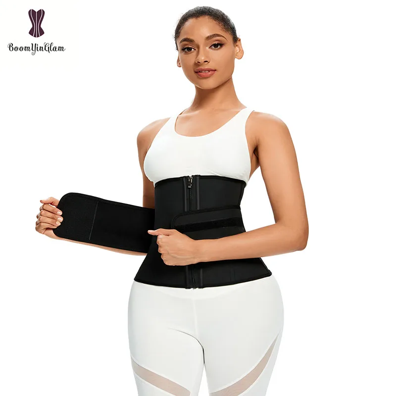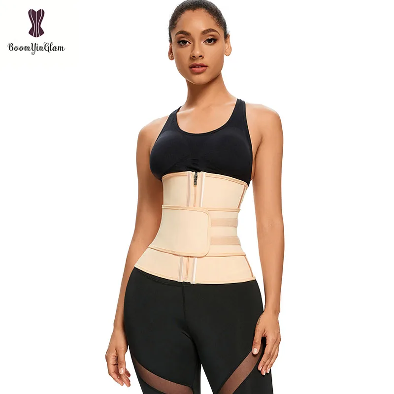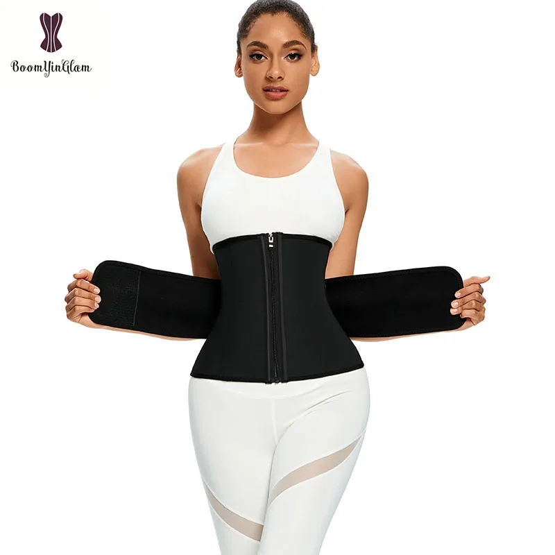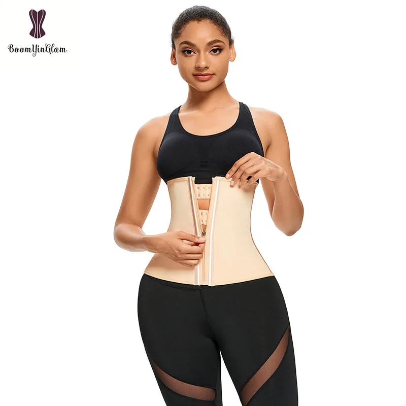 Zip And Hook Matte Latex Waist Trainer Belt 9 Steel Boned Underbust Corset Woman Plus Size Modeling Strap Belt