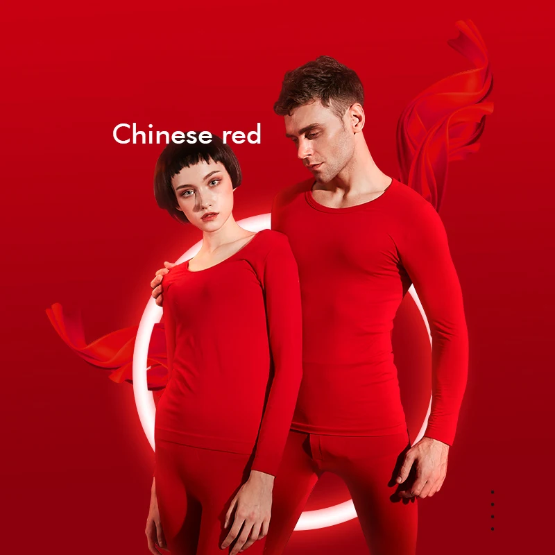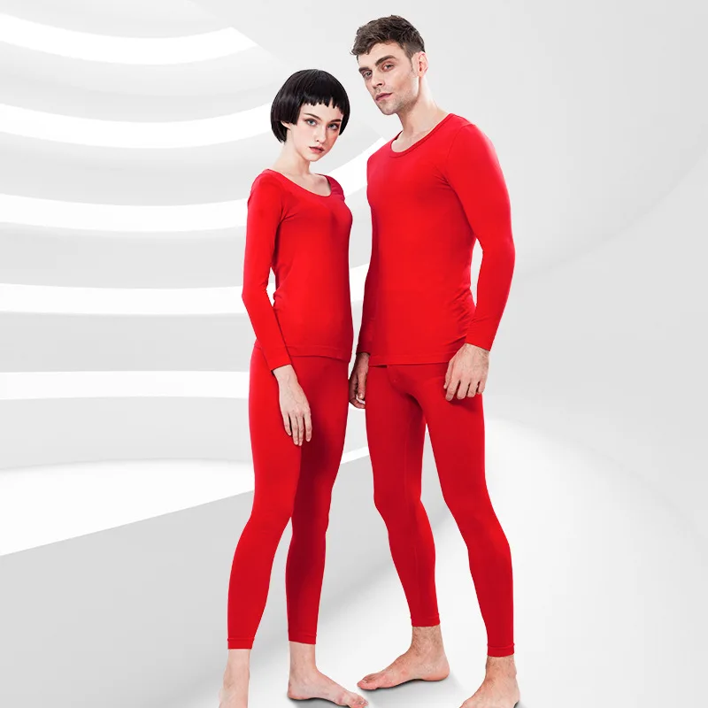 ZJX Winter Couple Thermal Underwear Set Red Women Soft Cotton Long Johns Keep Warm Suit Men Inner Wear Clothing Thermo Underwear