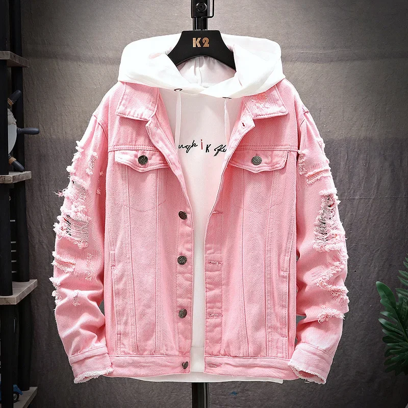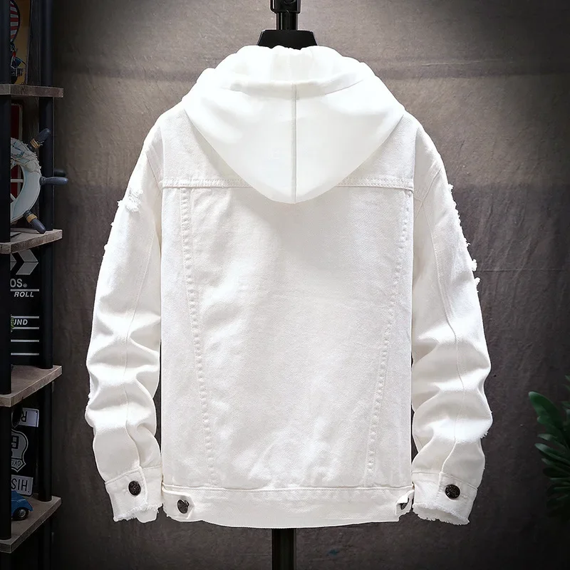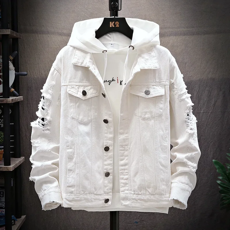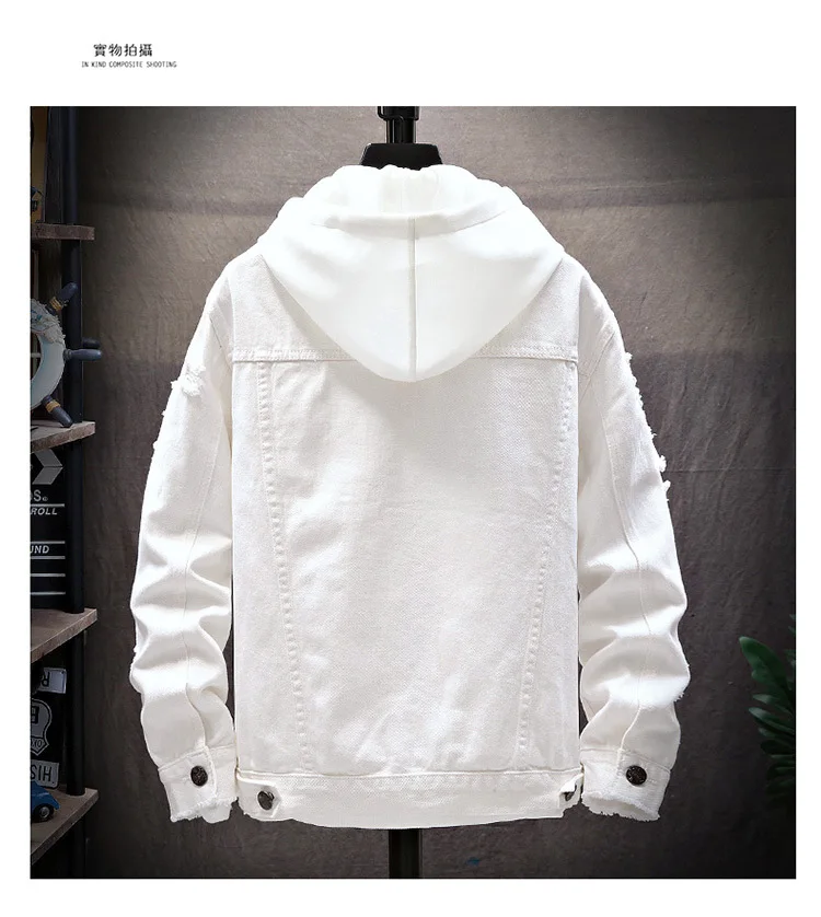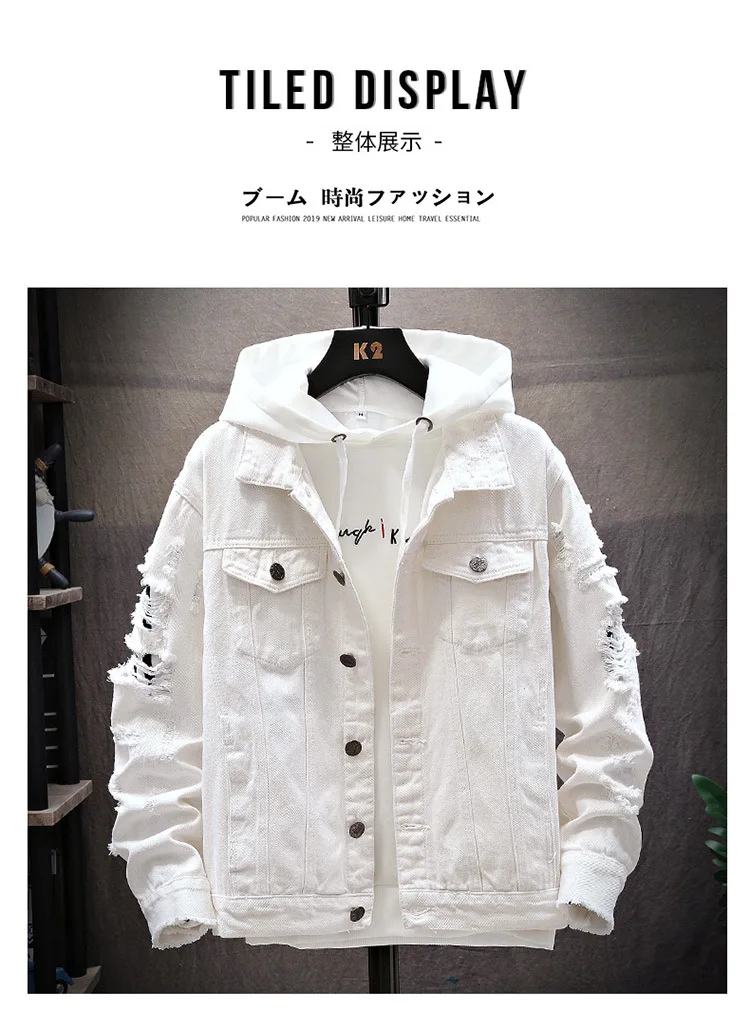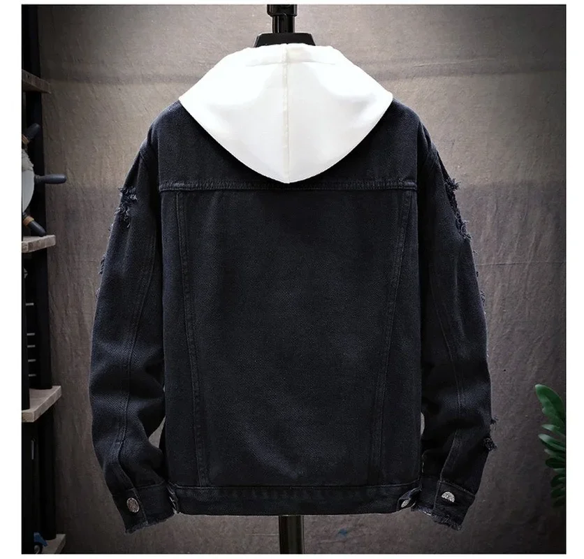 ZOGAA Men’s Denim Jacket Casual Ripped Loose Denim Jacket Men’s Denim Jacket Fashion Casual Solid Color Male Streetwear
